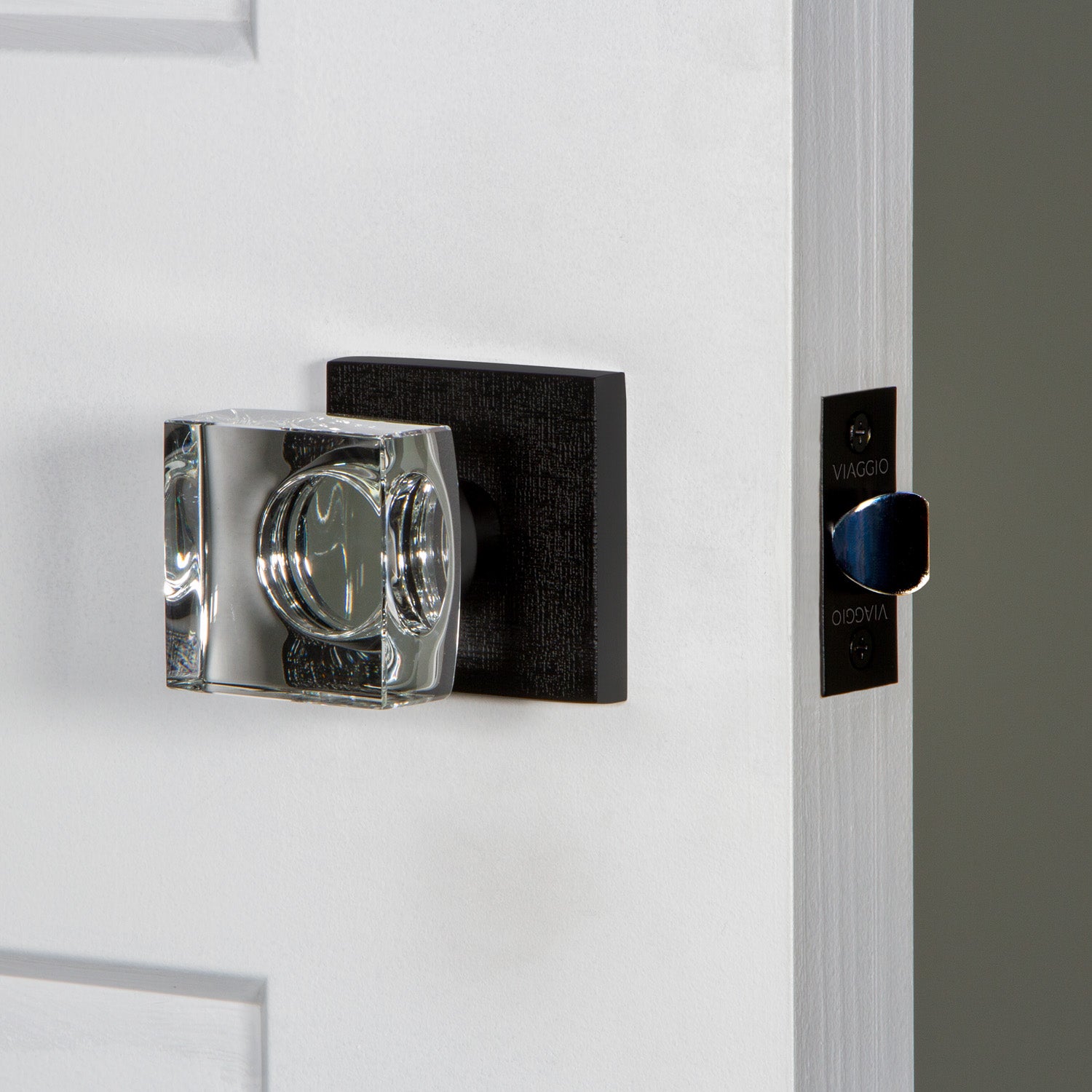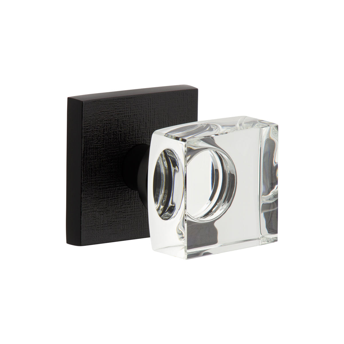 Quadrato Linen Rosette with Quadrato Crystal Knob in Satin Black