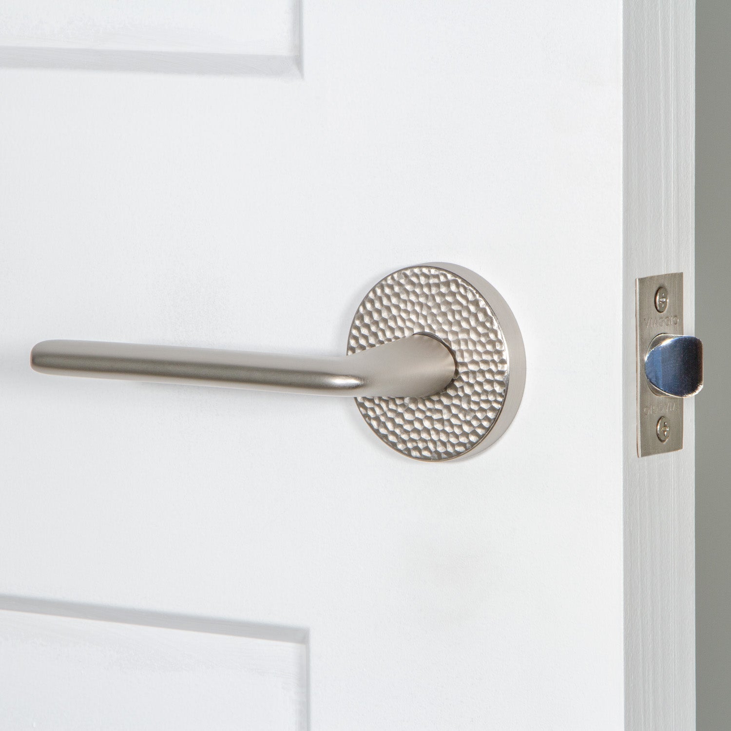 Circolo Hammered Rosette with Brezza Lever in Satin Nickel