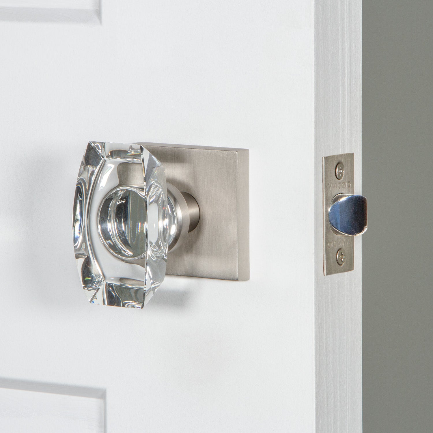 Quadrato Rosette with Quadrato Crystal Knob in Satin Nickel