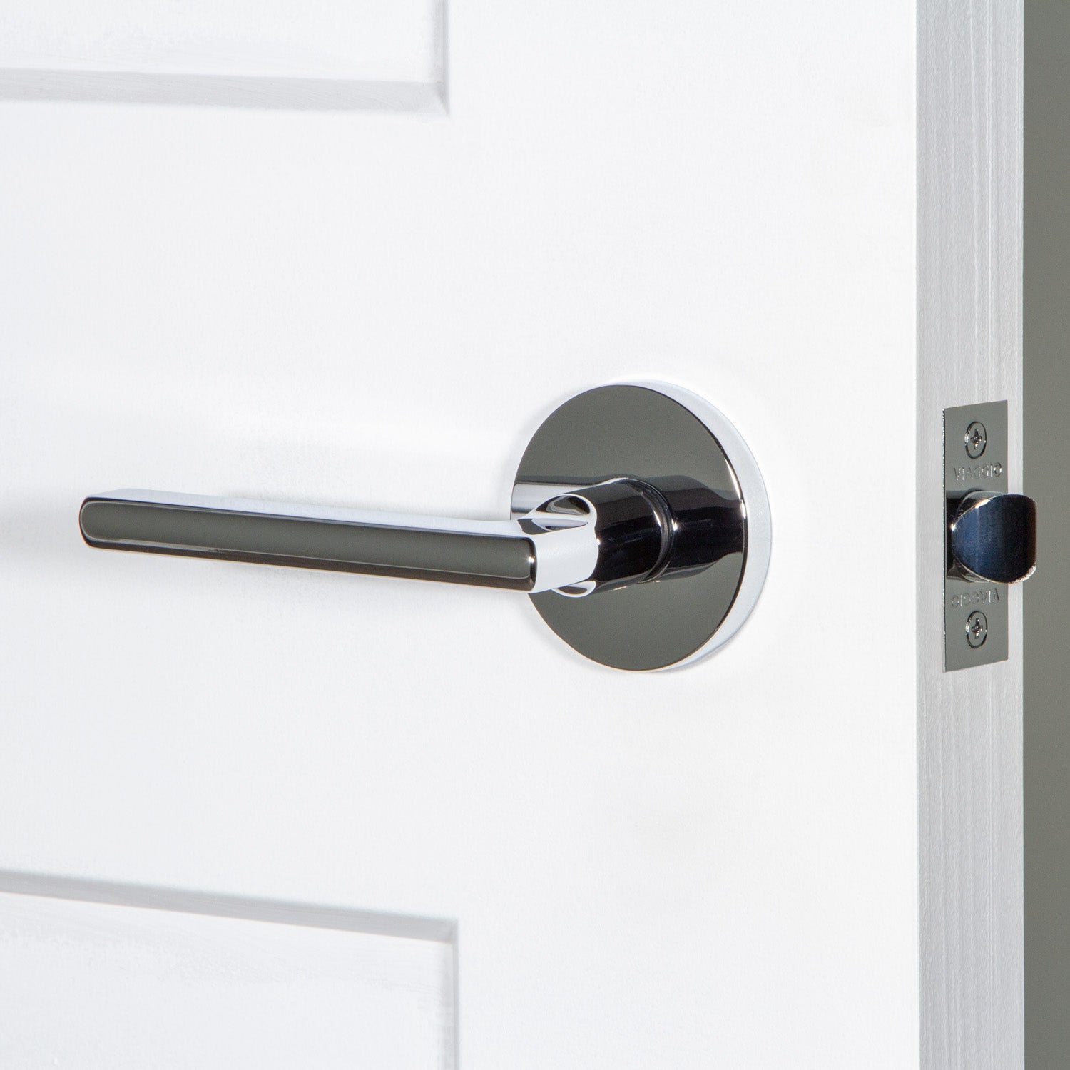 Circolo Leather Rosette with Milano Lever in Bright Chrome