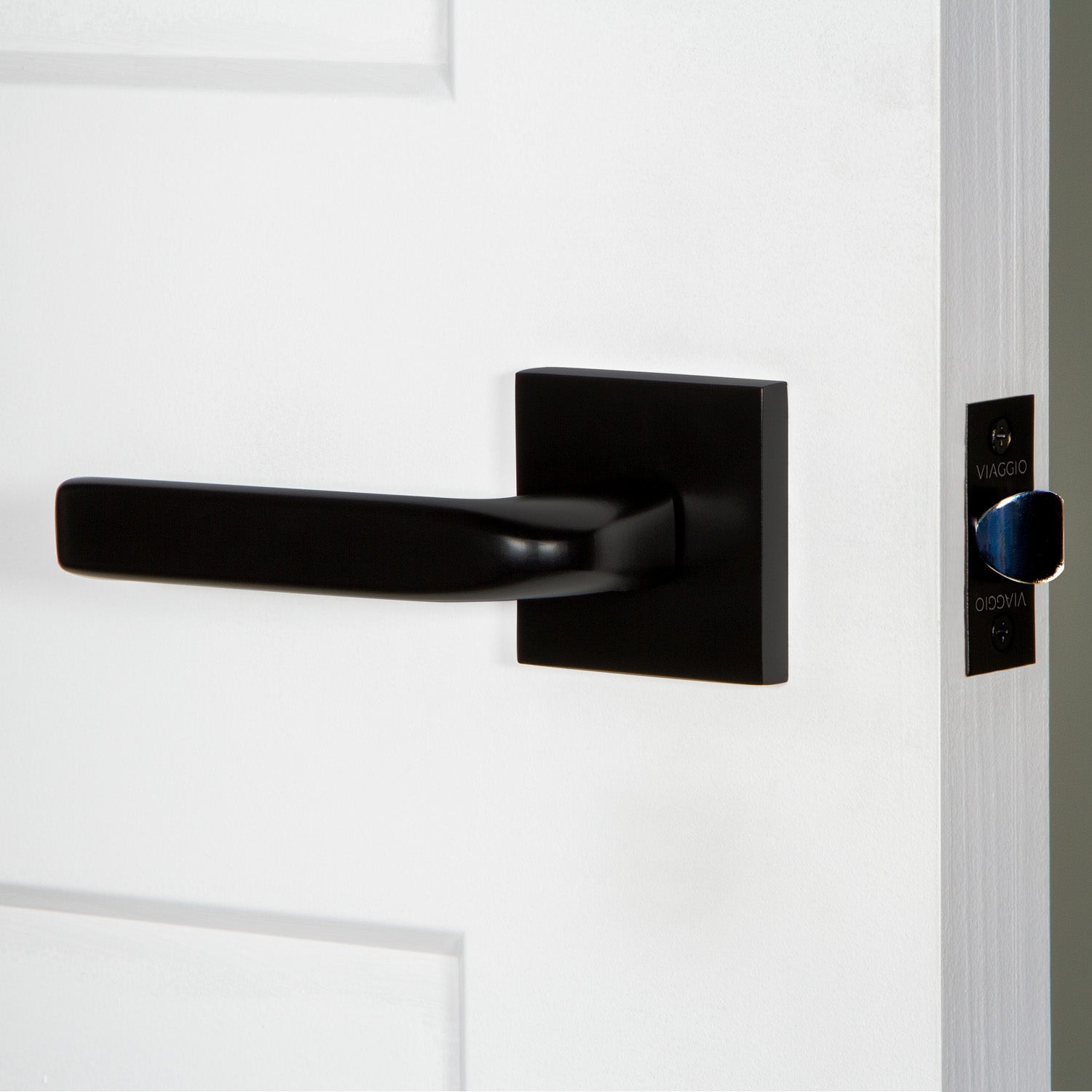 Quadrato Linen Rosette with Bella Lever in Satin Black