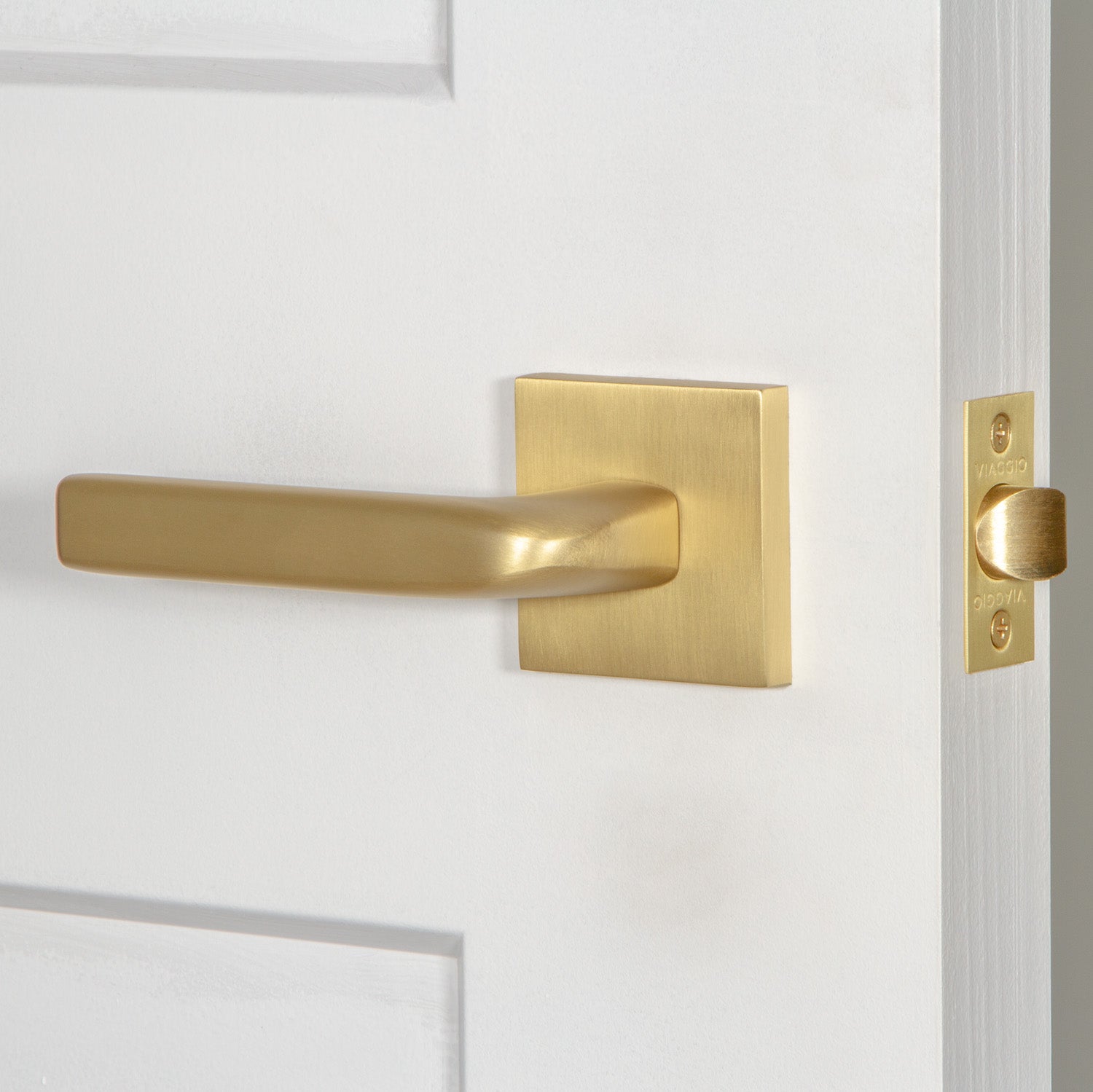 Quadrato Linen Rosette with Bella Lever in Satin Brass