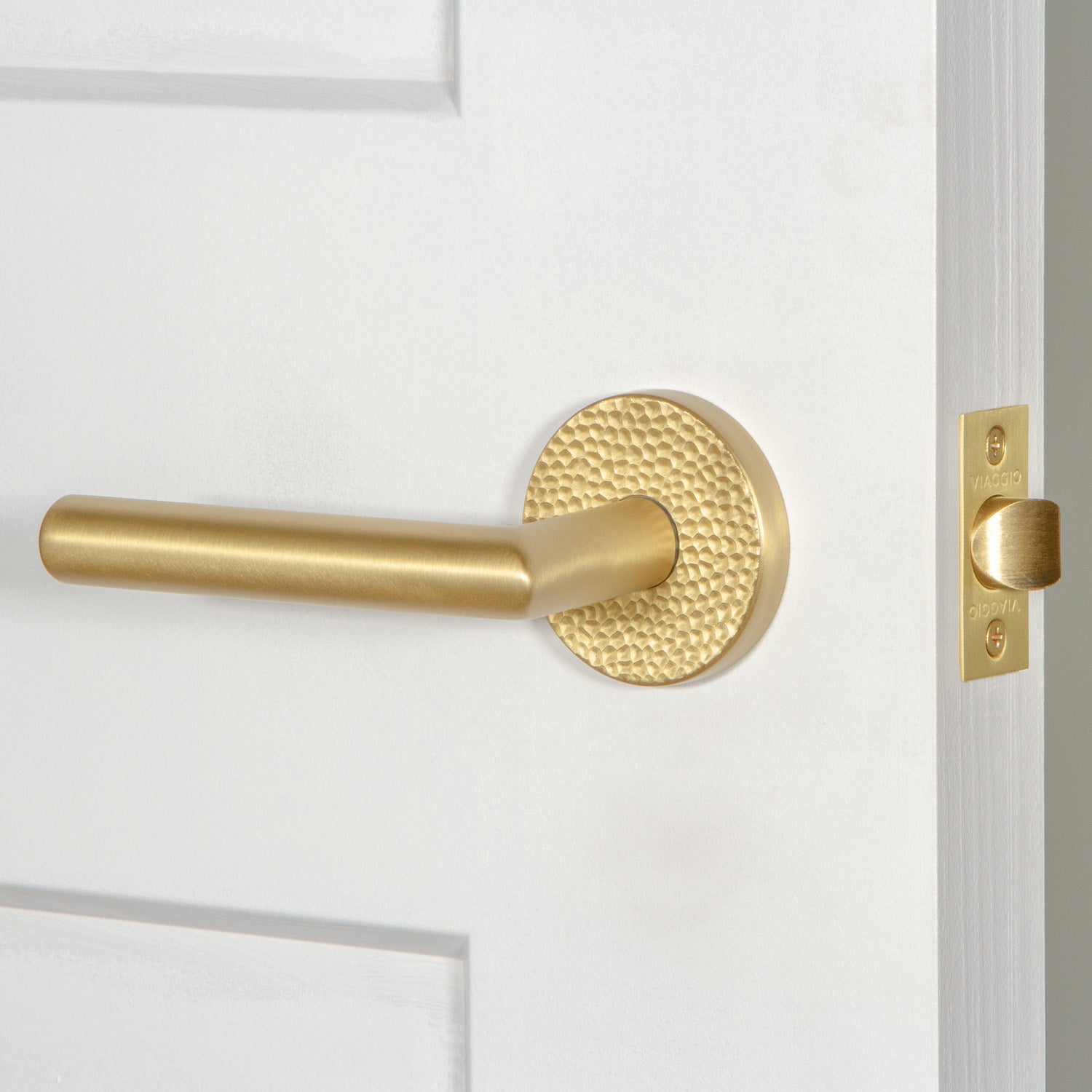 Circolo Hammered Rosette with Moderno Lever in Satin Brass