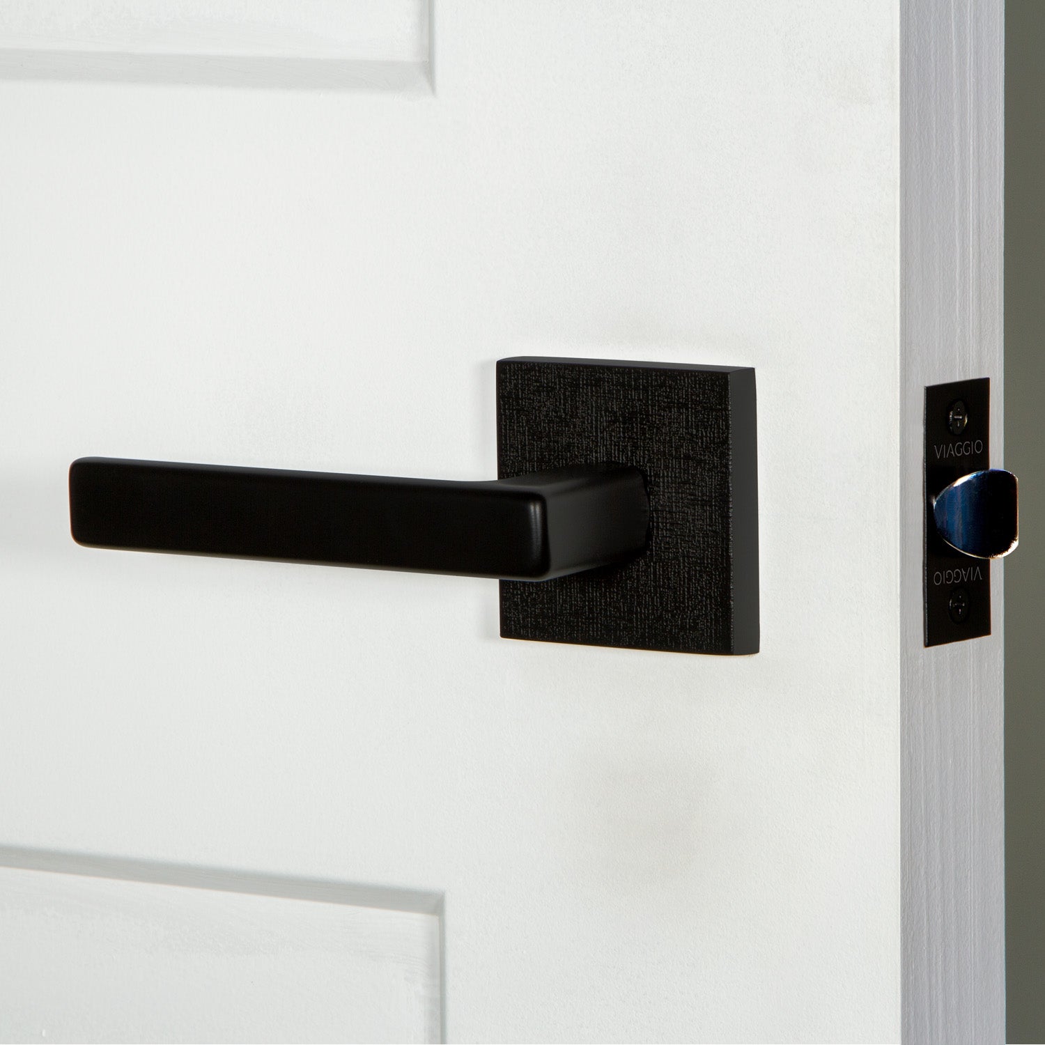 Quadrato Linen Rosette with Lusso Lever in Satin Black