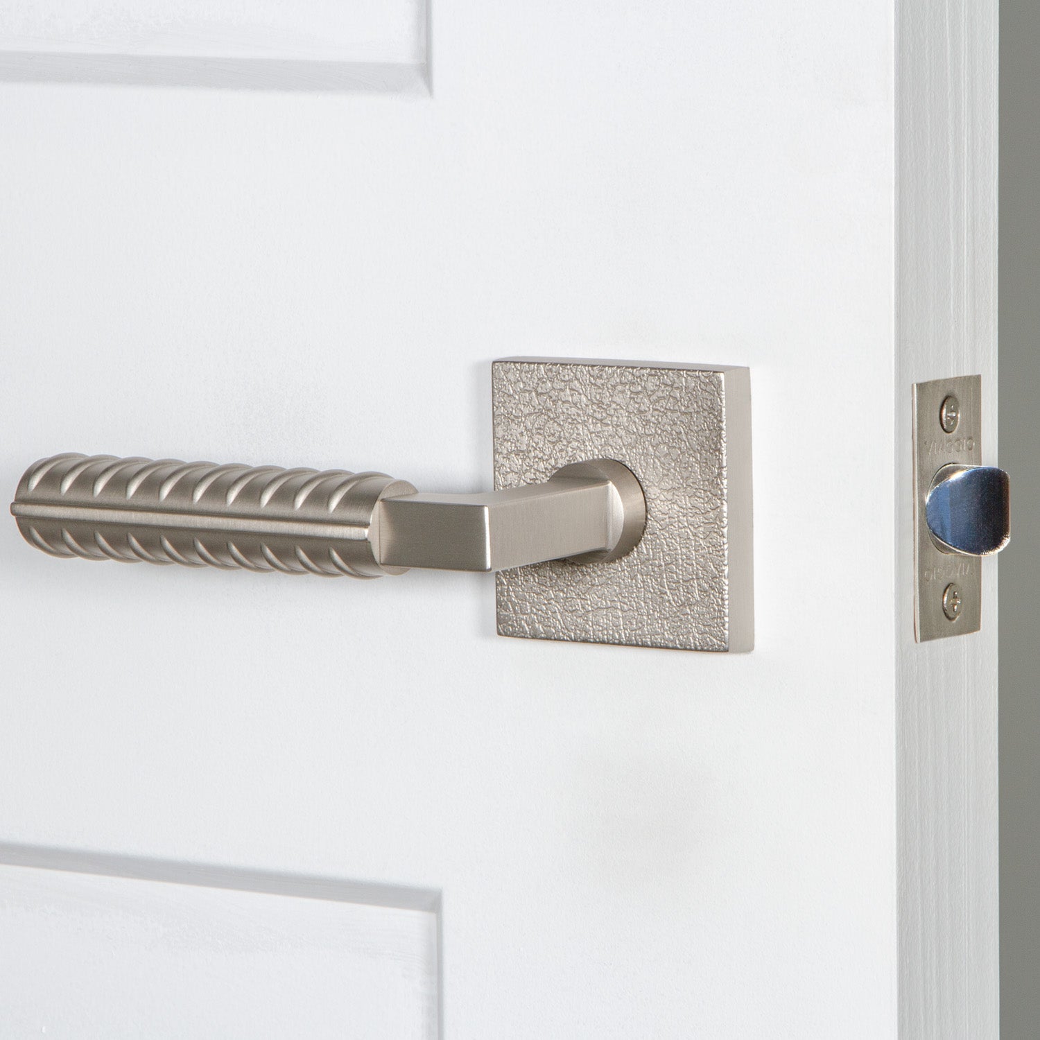 Quadrato Leather Rosette with Contempo Rebar Lever in Satin Nickel