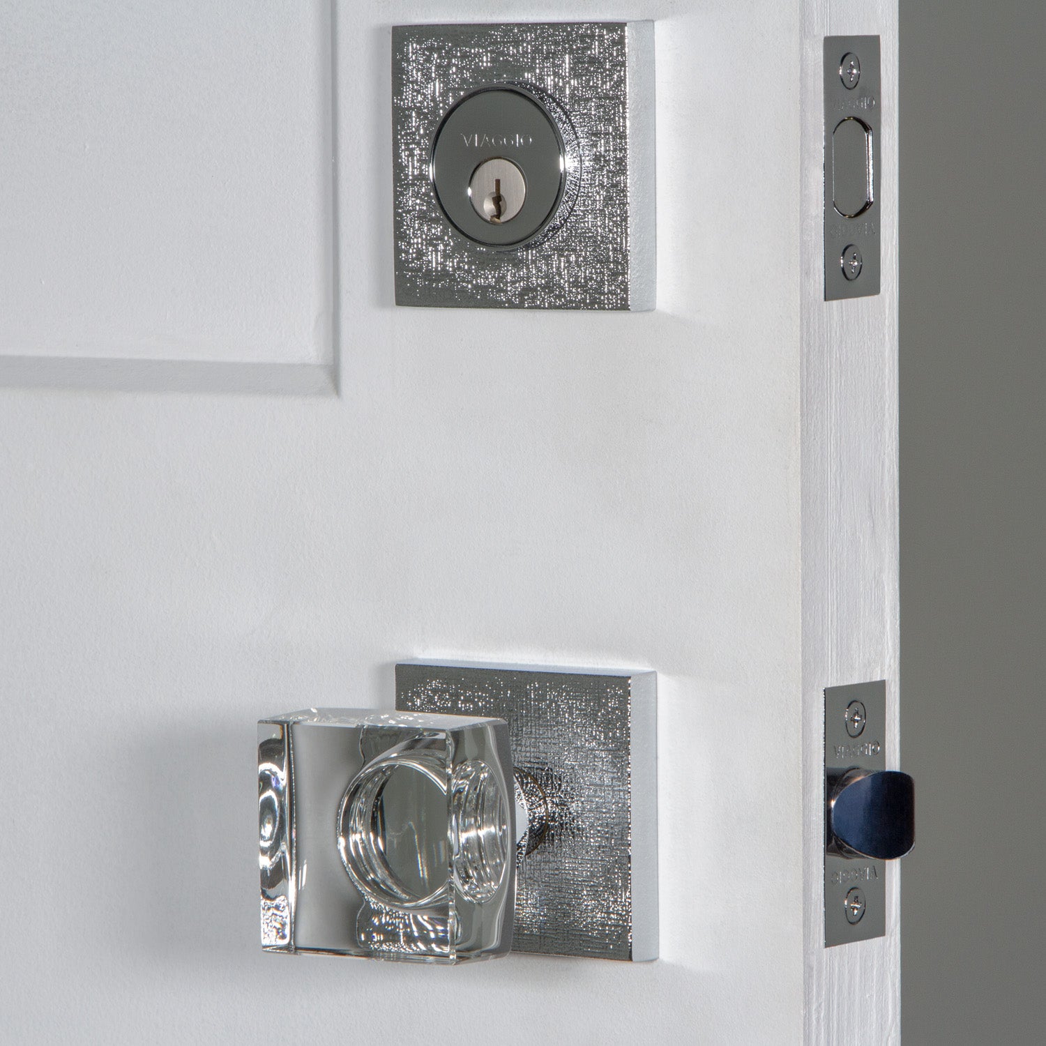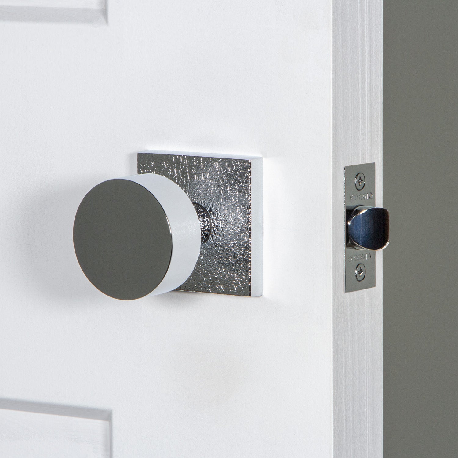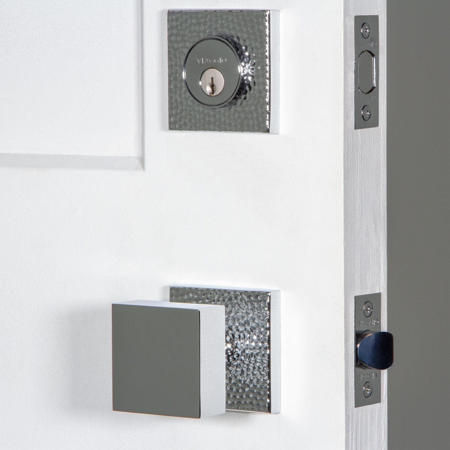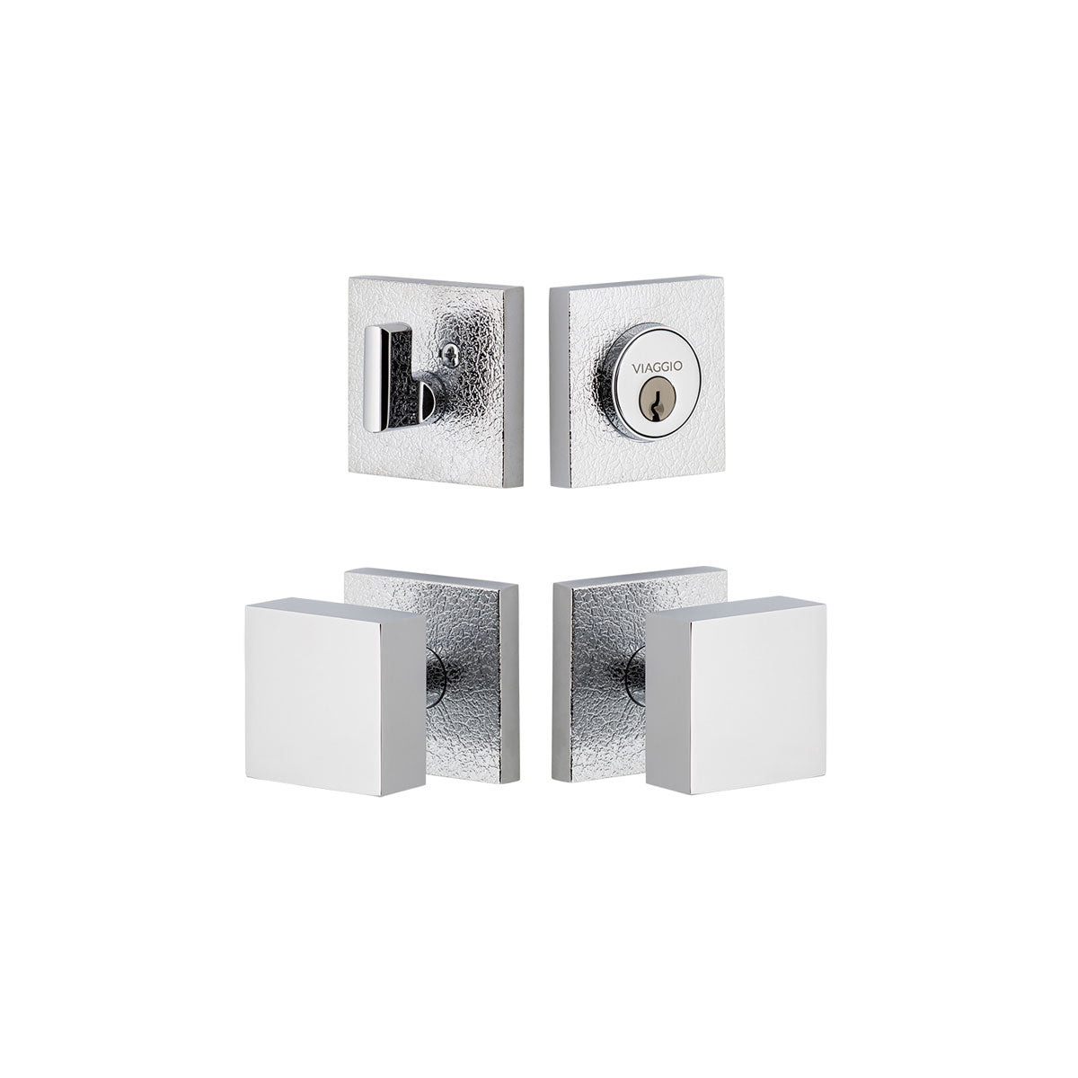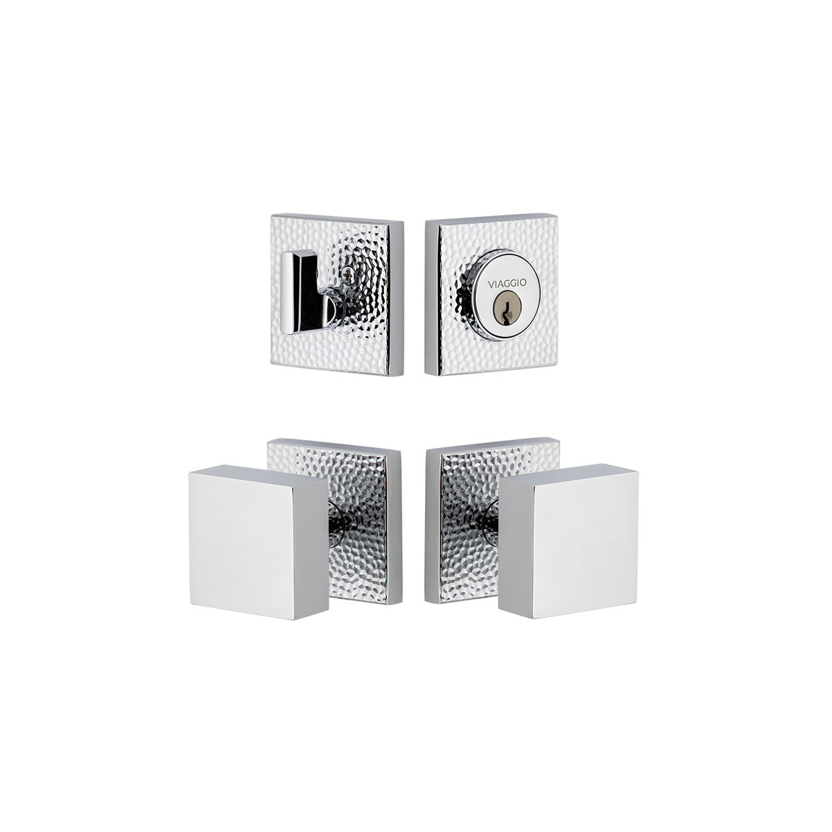Quadrato Hammered Rosette Entry Set with Quadrato Knob in Bright Chrome