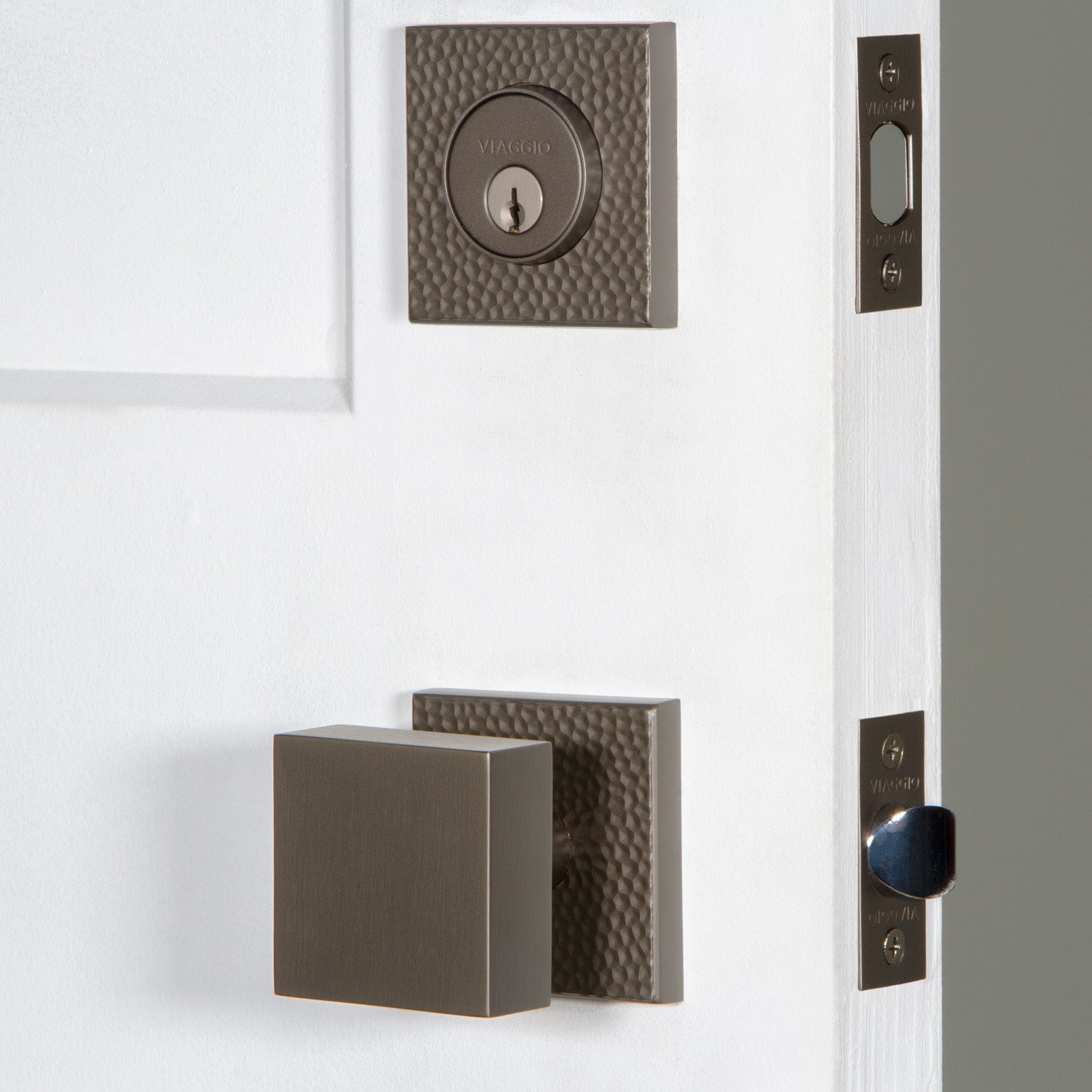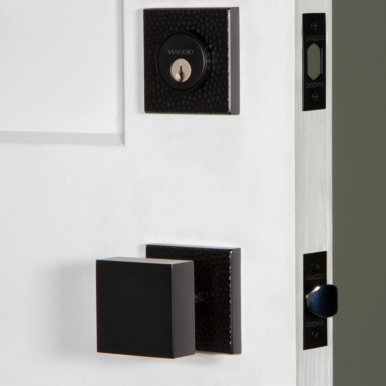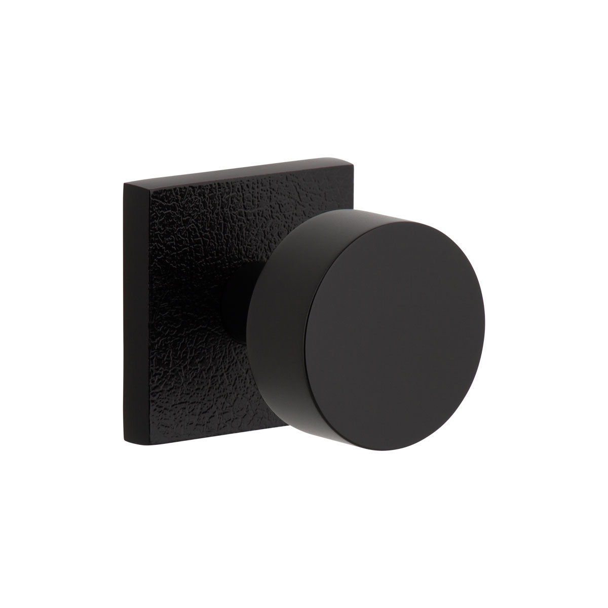 Quadrato Hammered Rosette Entry Set with Quadrato Knob in Satin Black