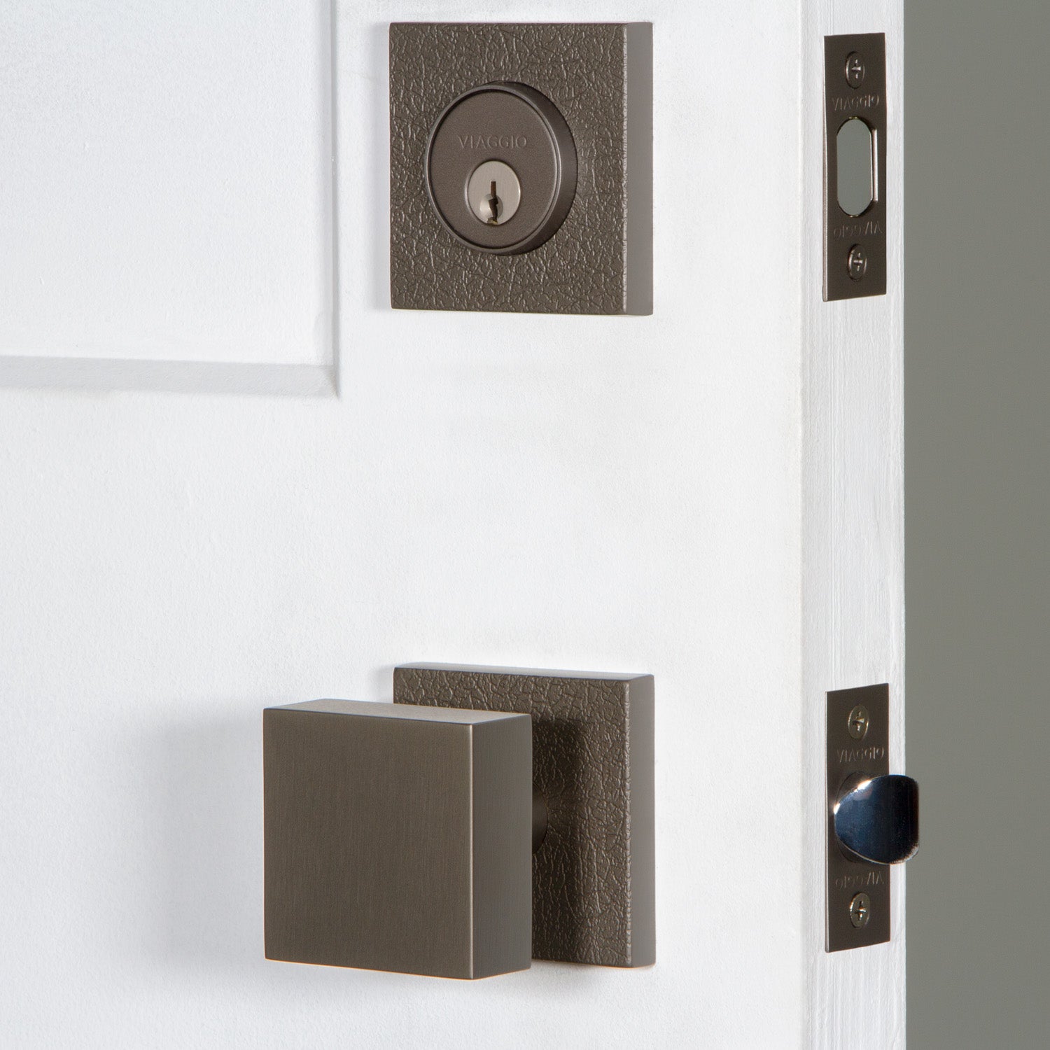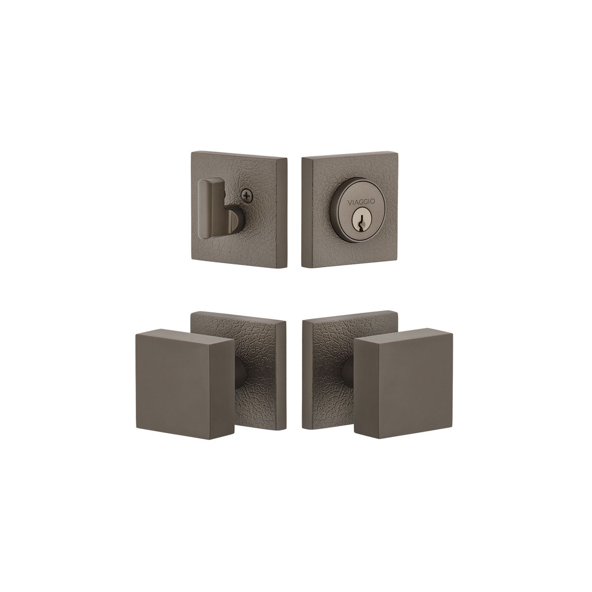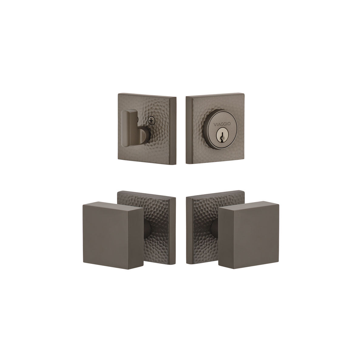 Quadrato Hammered Rosette Entry Set with Quadrato Knob in Titanium Gray