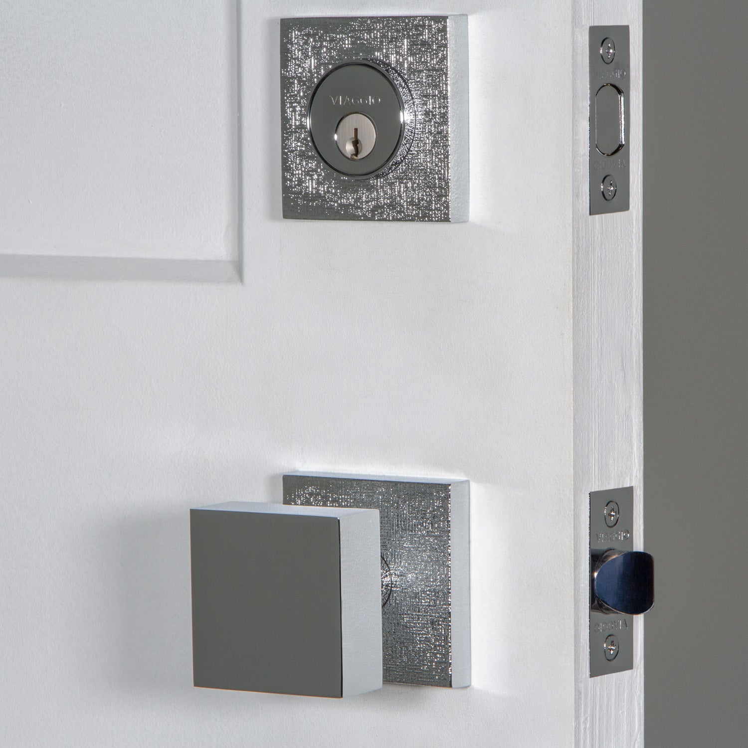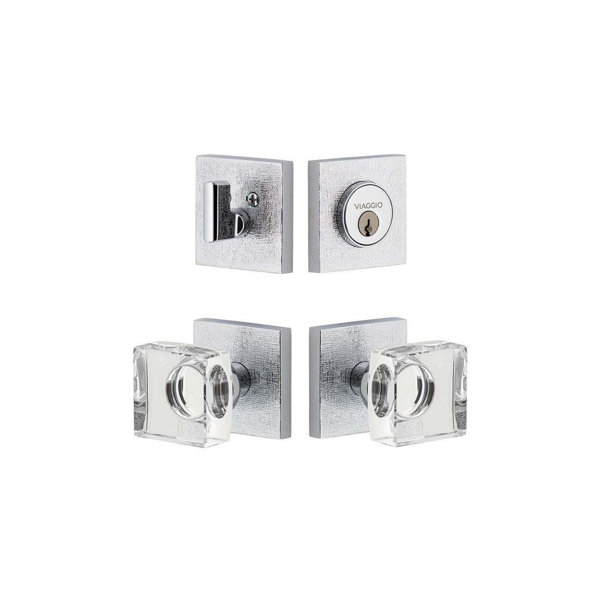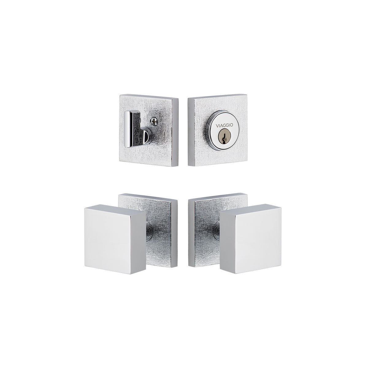 Quadrato Linen Rosette Entry Set with Quadrato Knob in Bright Chrome
