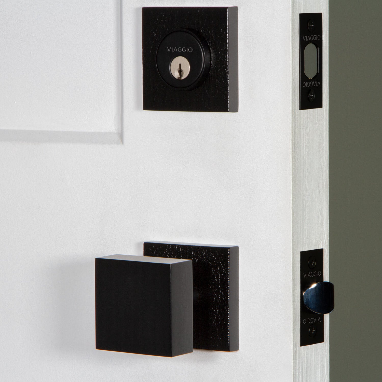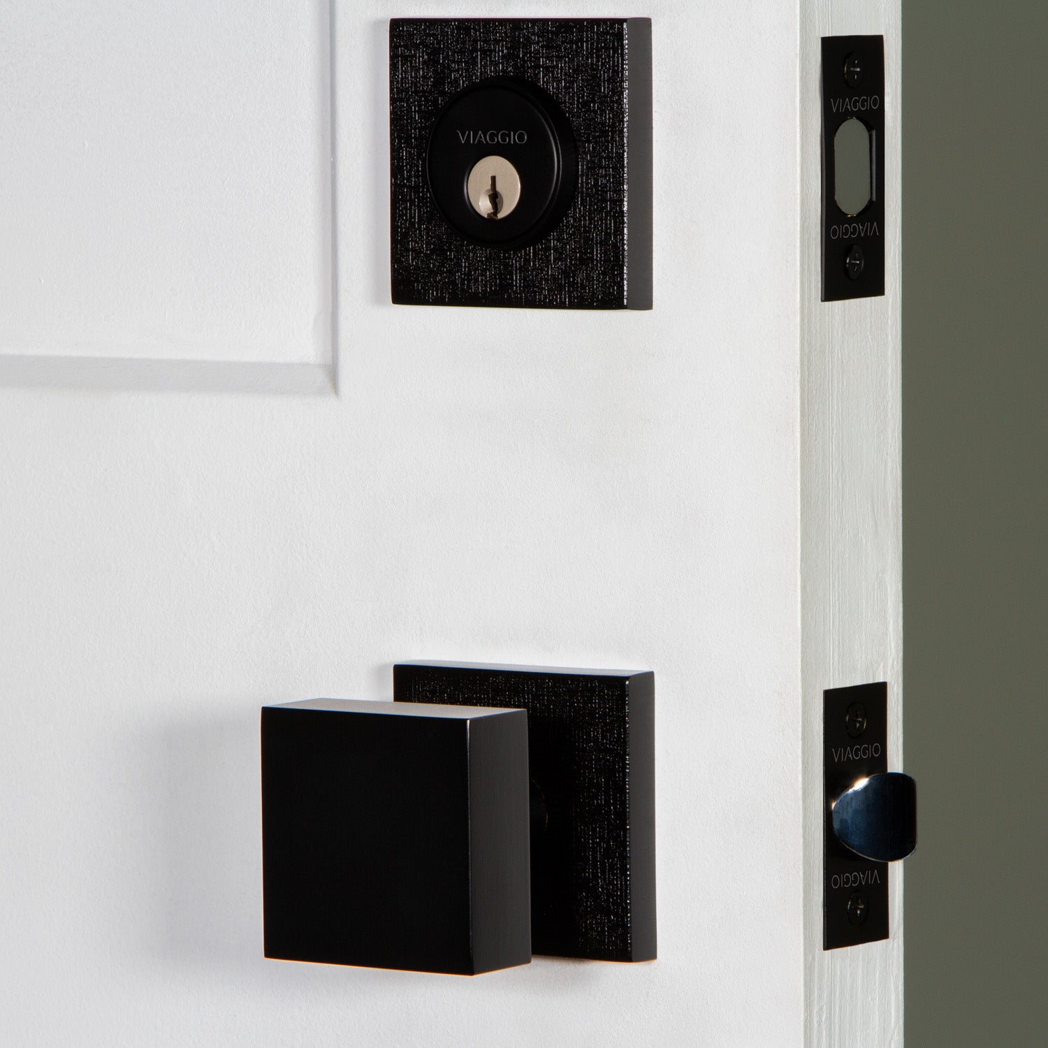 Quadrato Linen Rosette Entry Set with Quadrato Knob in Satin Black