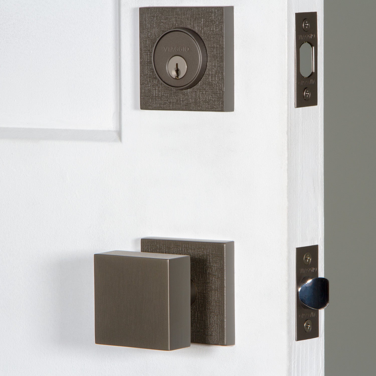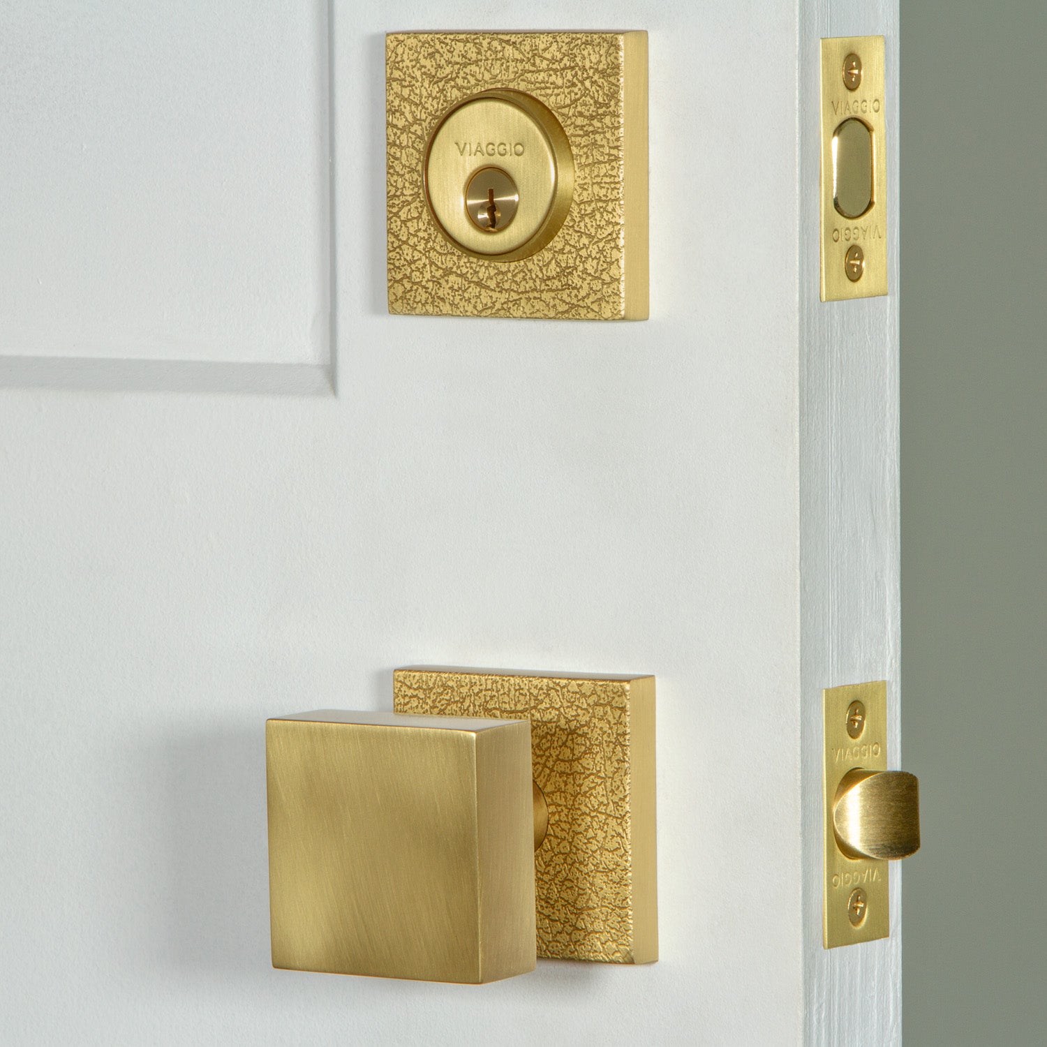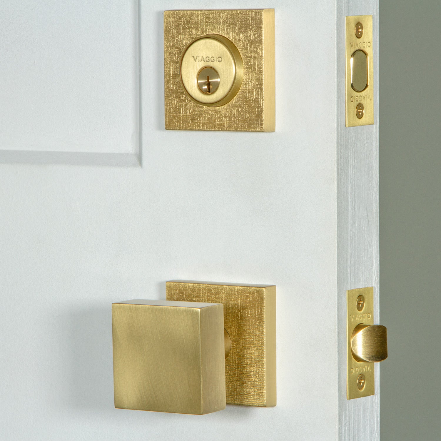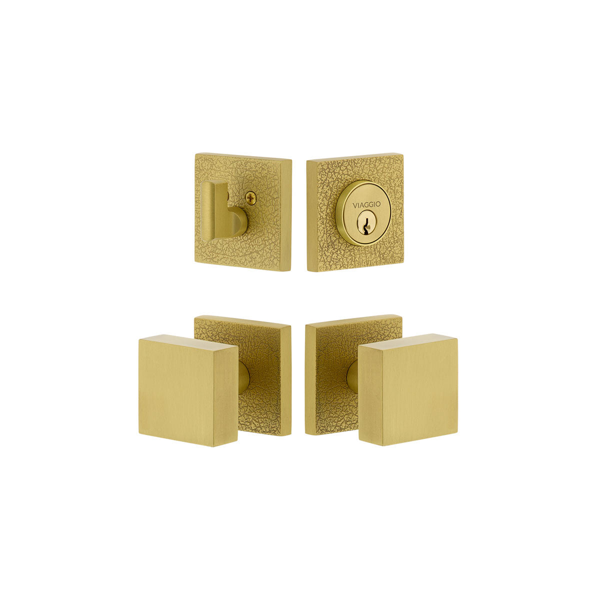 Quadrato Linen Rosette Entry Set with Quadrato Knob in Satin Brass