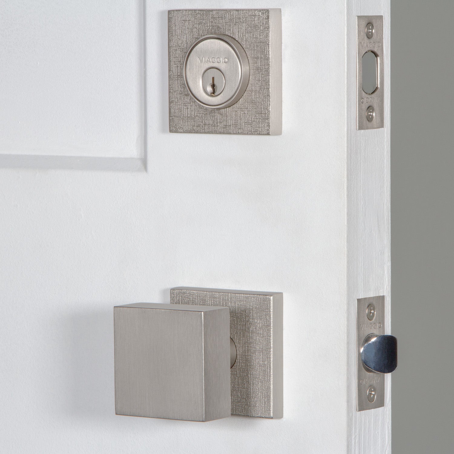 Quadrato Linen Rosette Entry Set with Quadrato Knob in Satin Nickel