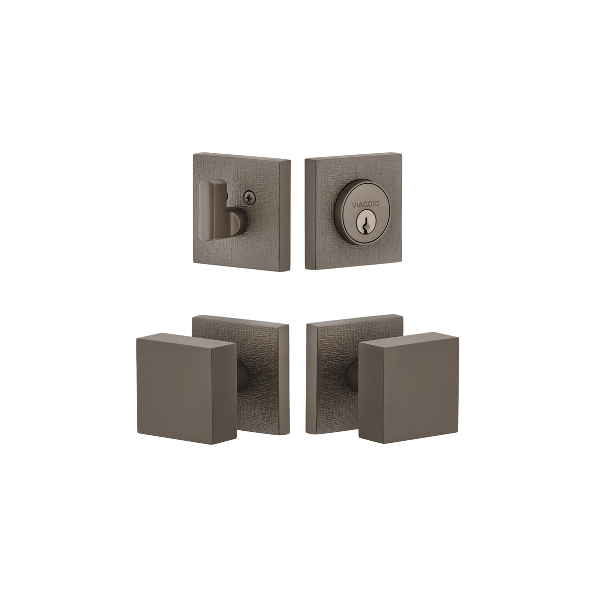 Quadrato Linen Rosette Entry Set with Quadrato Knob in Titanium Gray