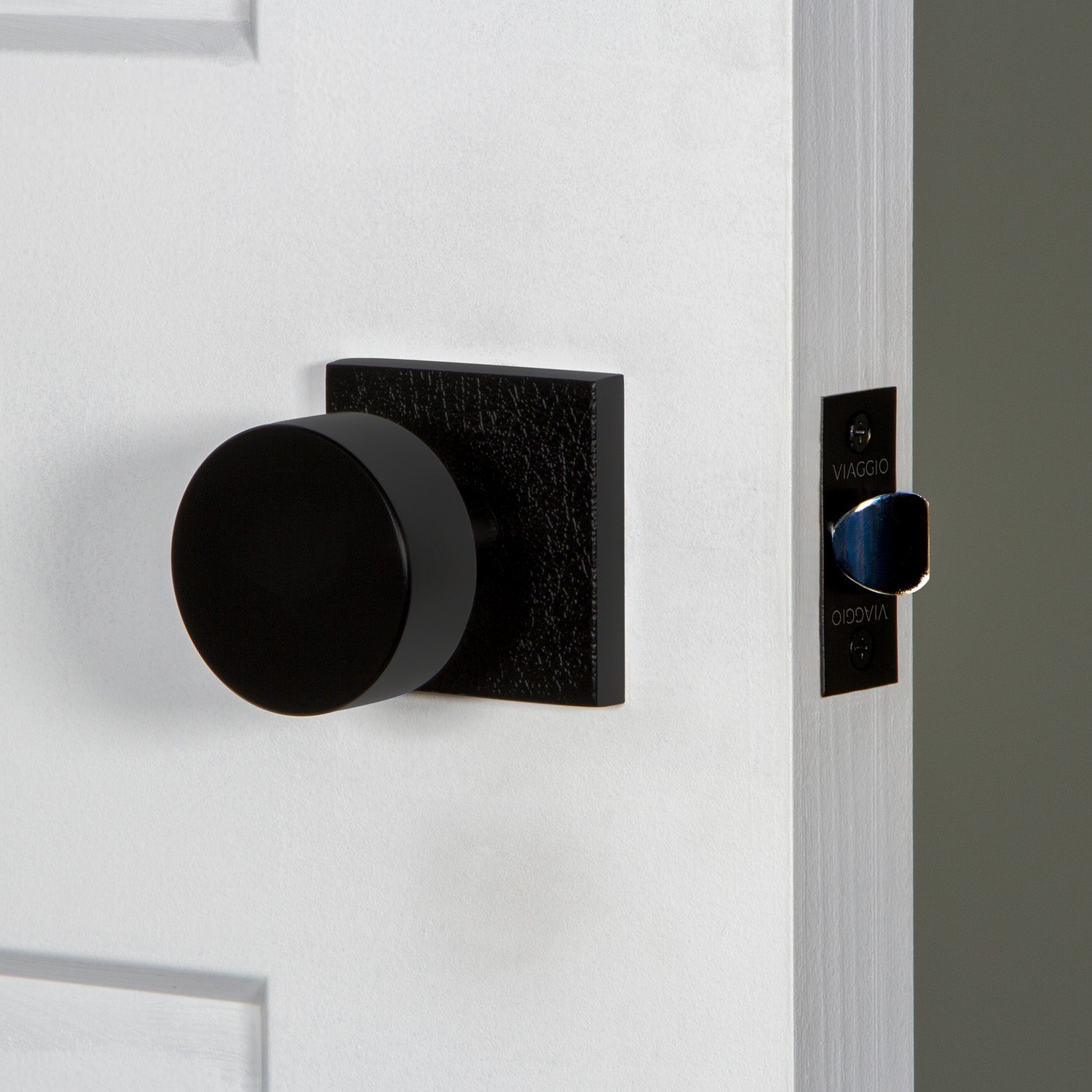 Quadrato Leather Rosette Entry Set with Quadrato Knob in Satin Black