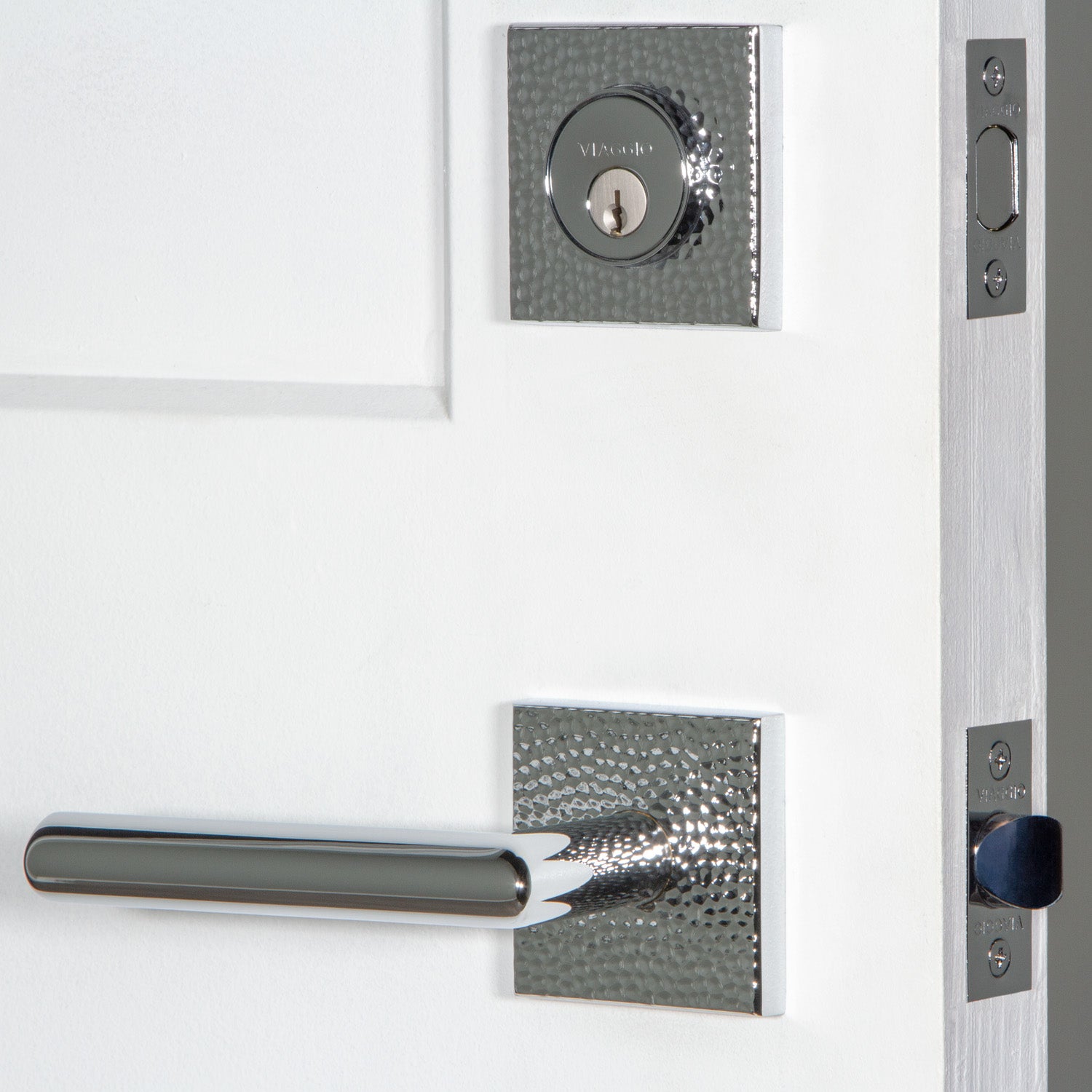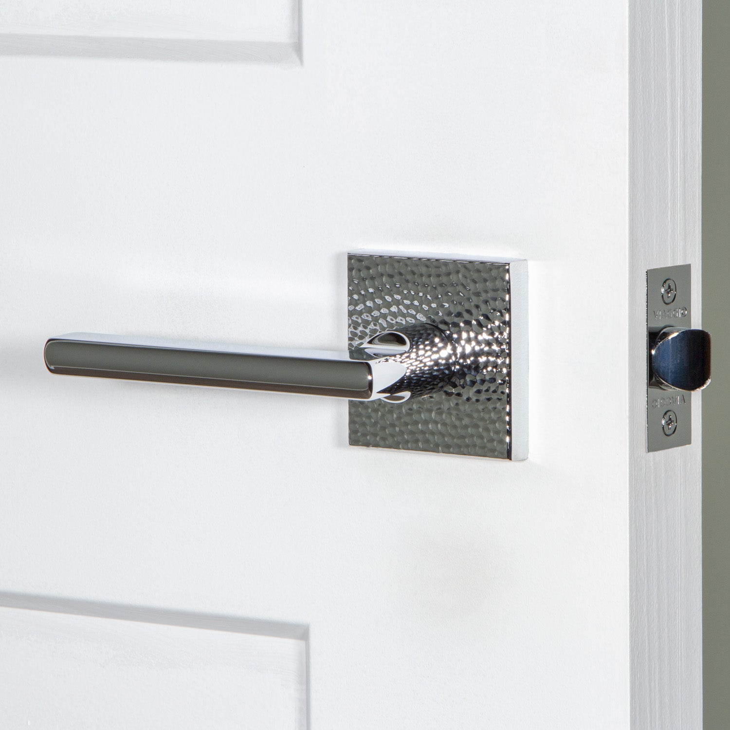Quadrato Hammered Rosette with Milano Lever in Bright Chrome