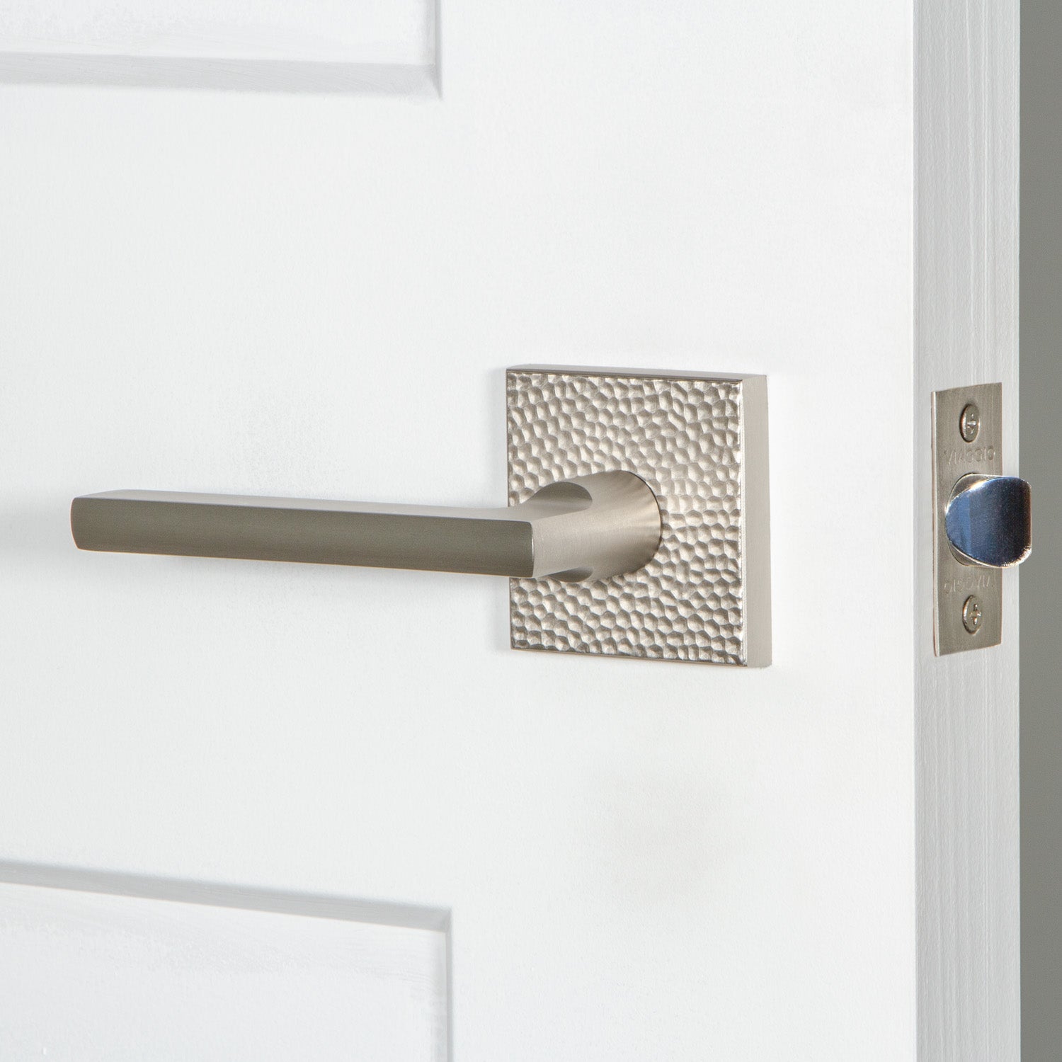Quadrato Hammered Rosette with Milano Lever in Satin Nickel