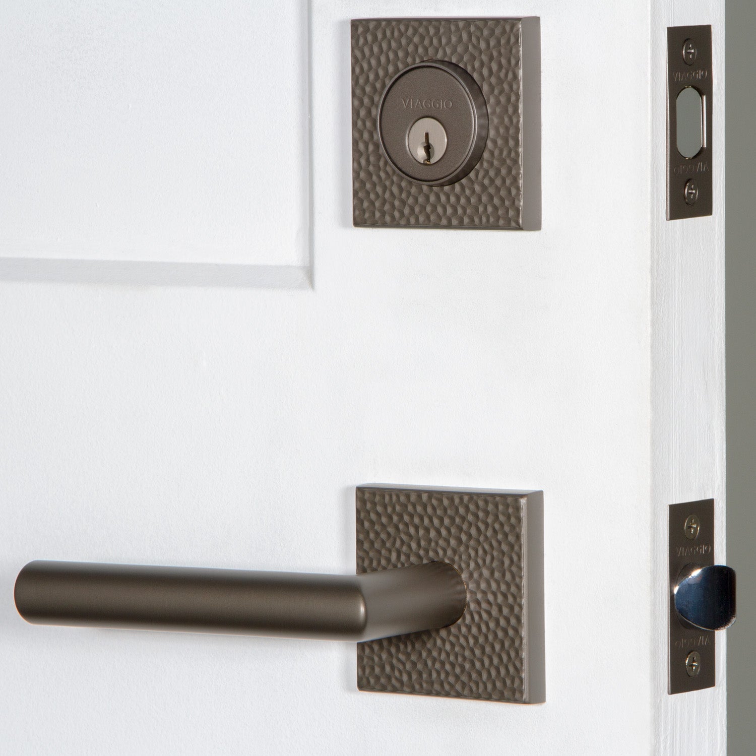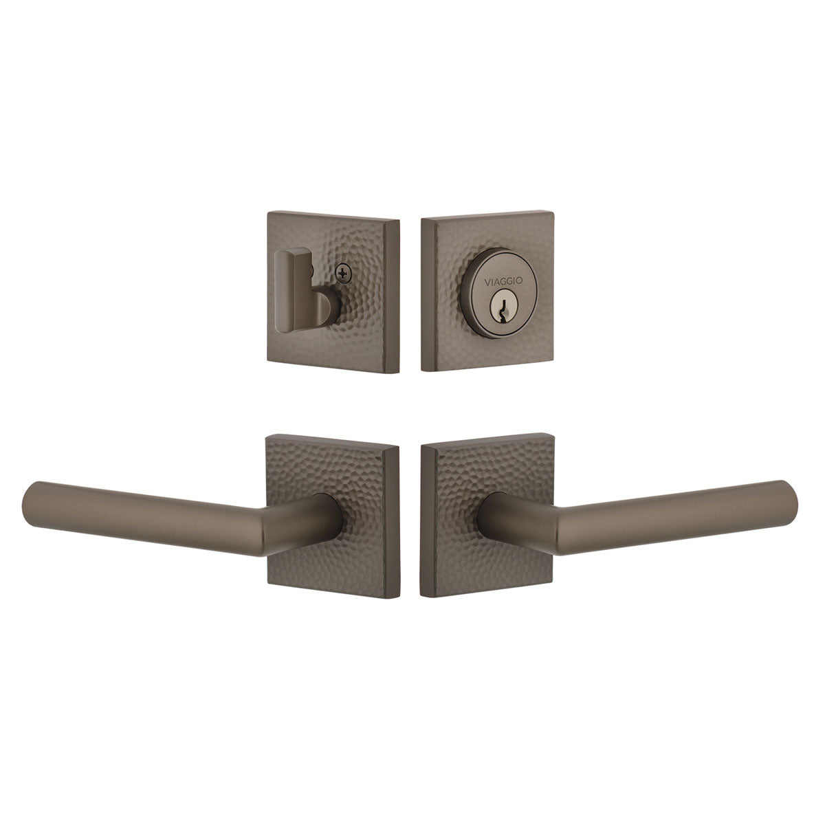 Quadrato Hammered Rosette Entry Set with Moderno Lever in Titanium Gray