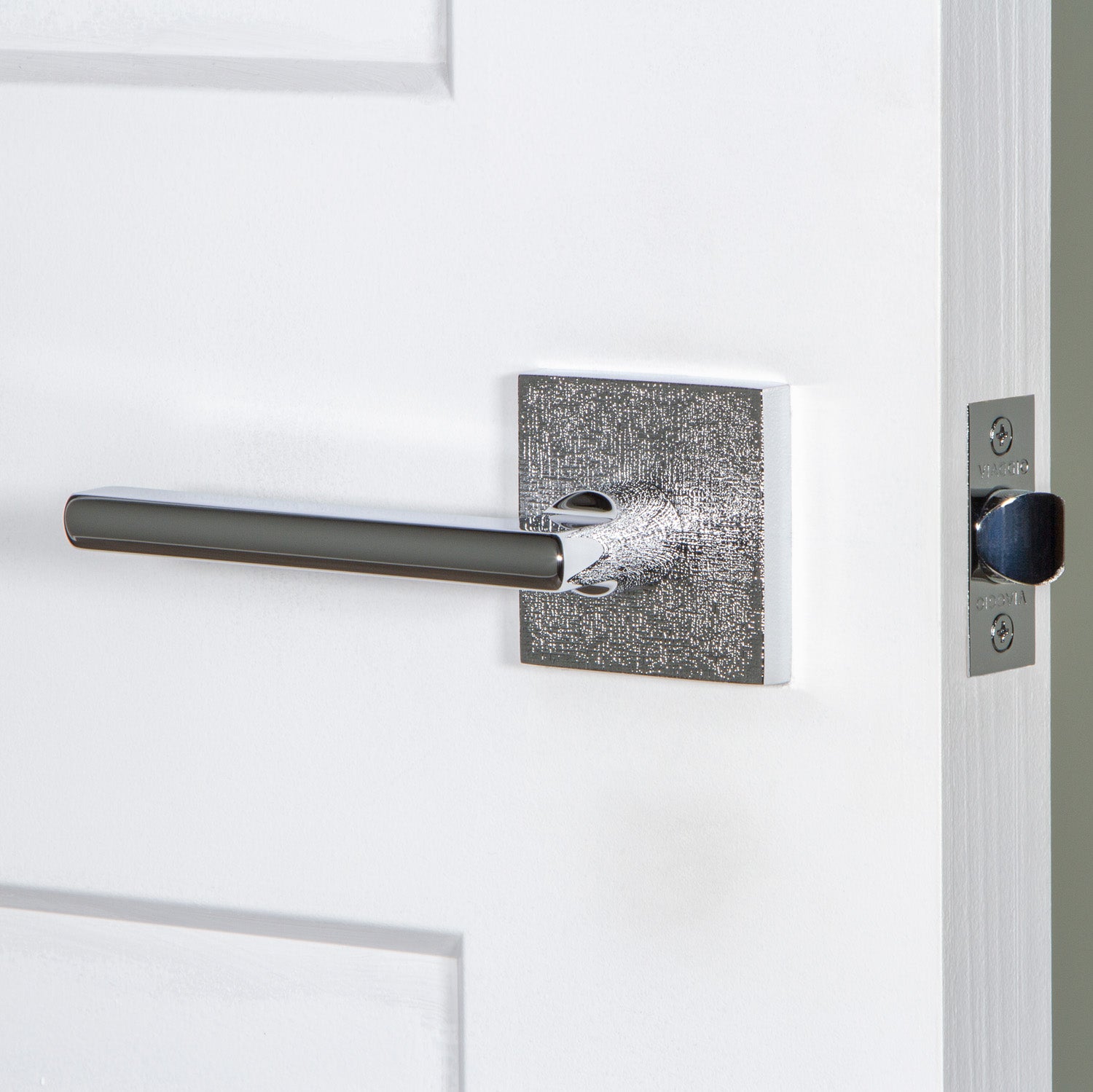 Our Motivo Collection includes rosettes and levers with natural and industrial textures including leather, linen, hammered, and rebar. When paired with a smooth knob or lever, textured rosettes create an imaginative juxtaposition to delight the eye.