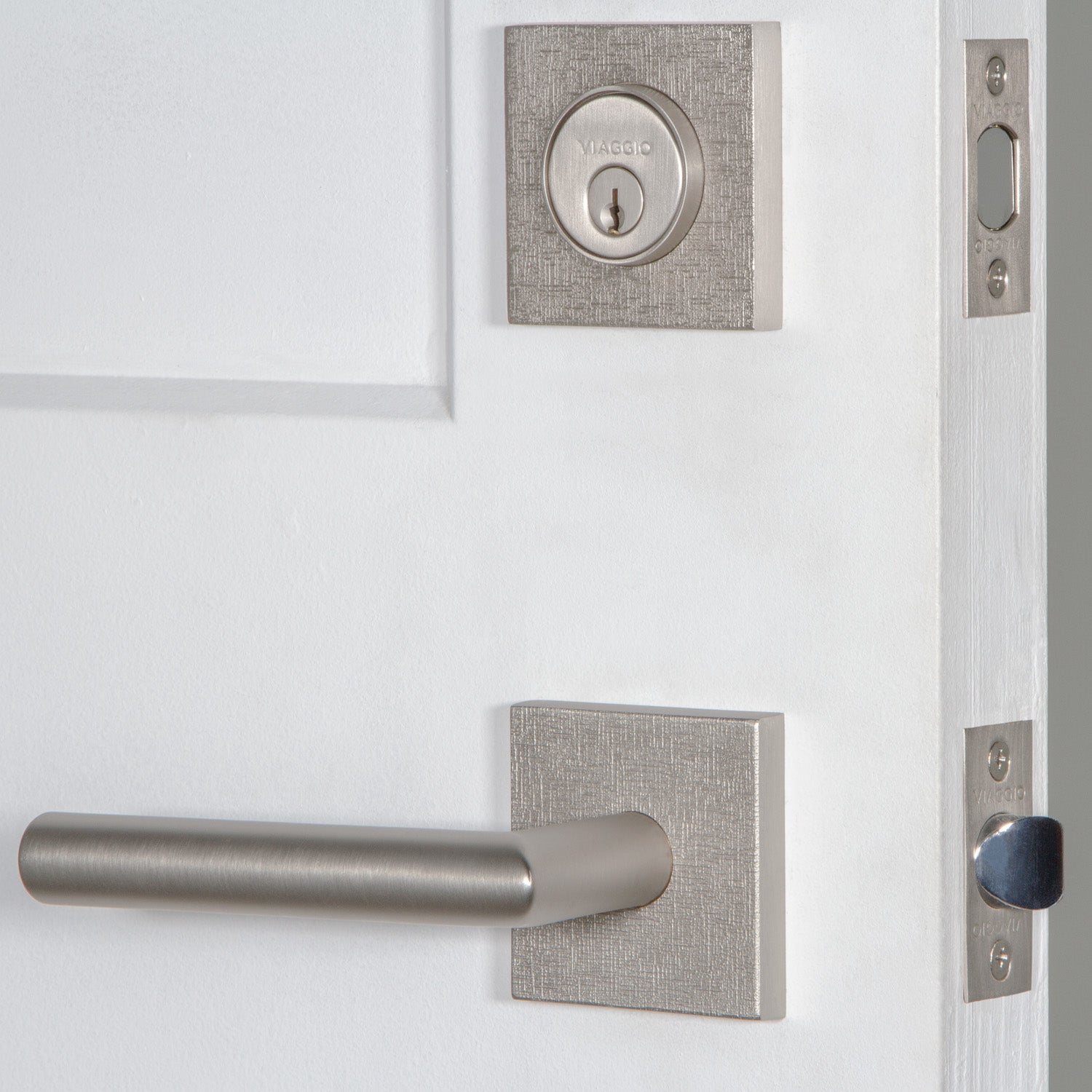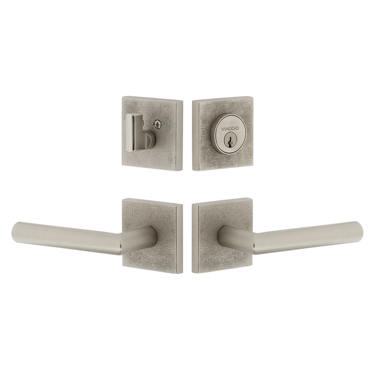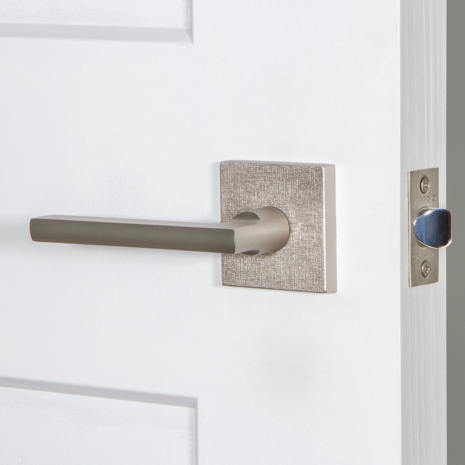 Quadrato Linen Rosette Entry Set with Moderno Lever in Satin Nickel