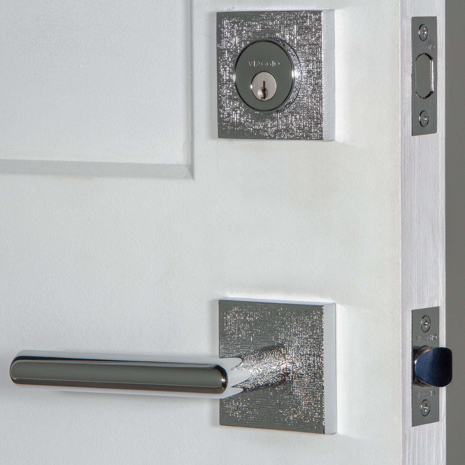 Quadrato Linen Rosette Entry Set with Moderno Lever in Bright Chrome