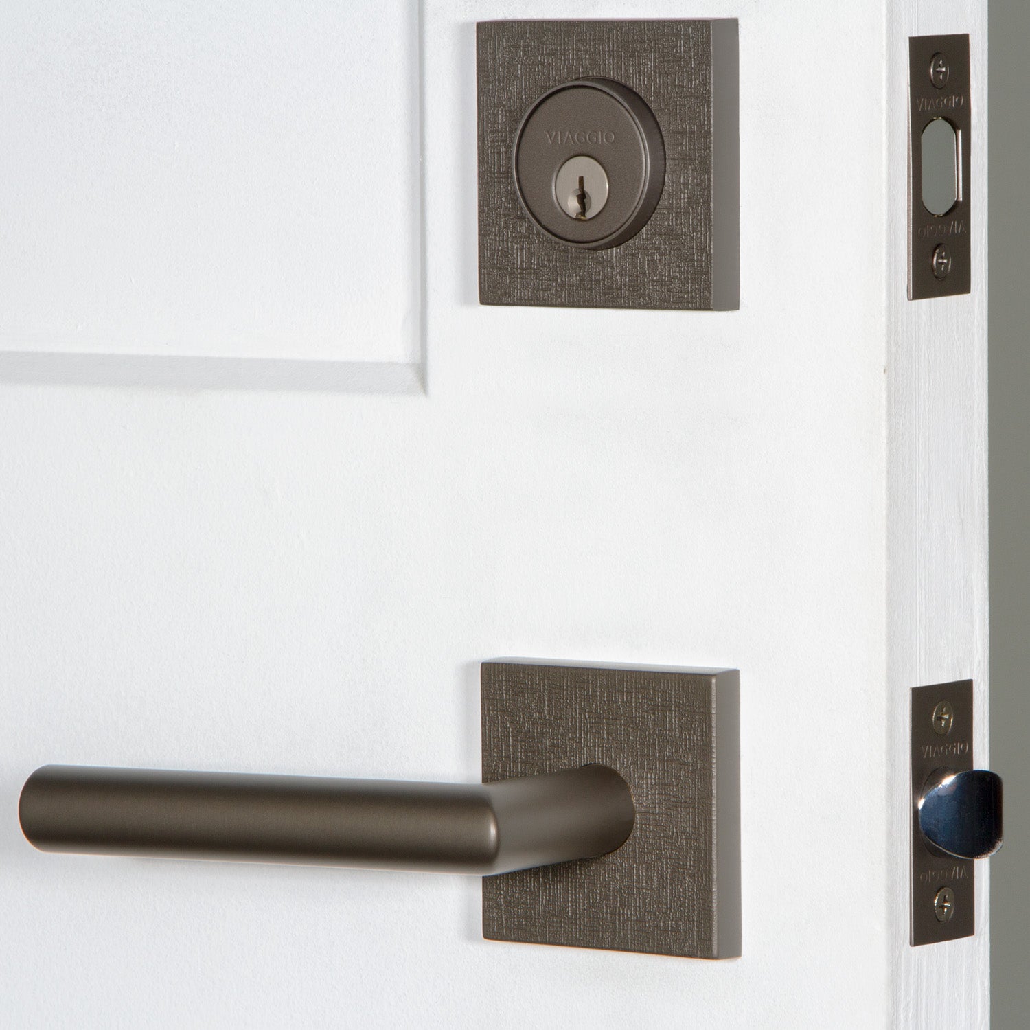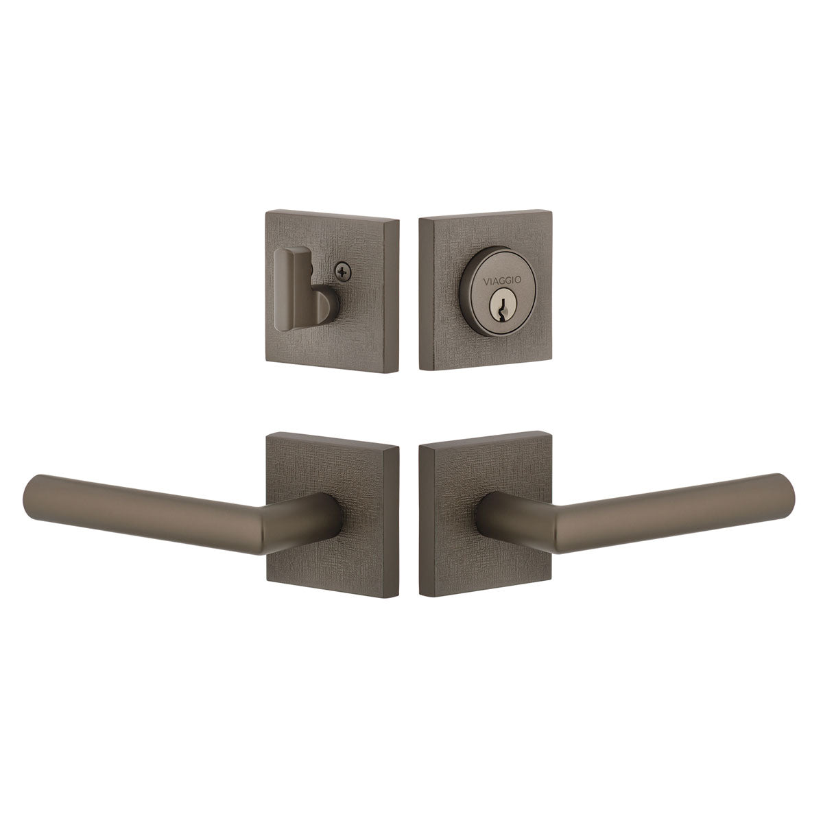Quadrato Linen Rosette Entry Set with Moderno Lever in Titanium Gray