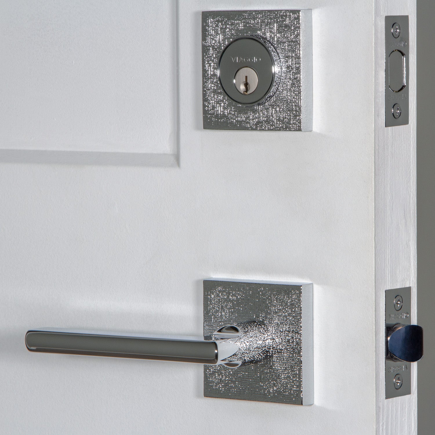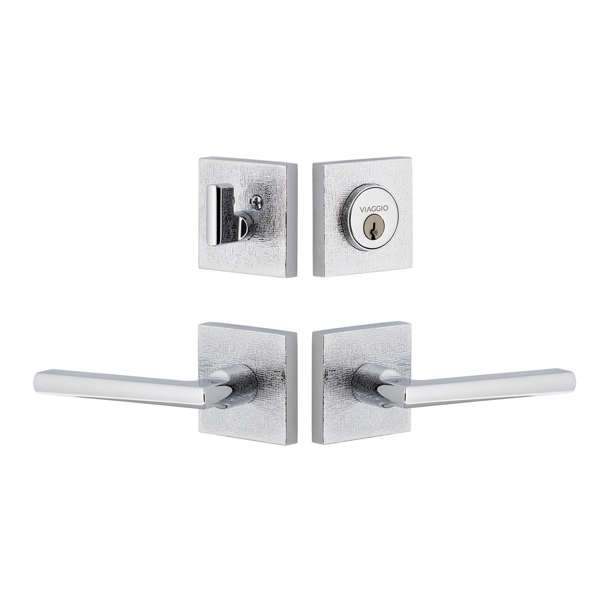 Quadrato Linen Rosette Entry Set with Milano Lever in Bright Chrome