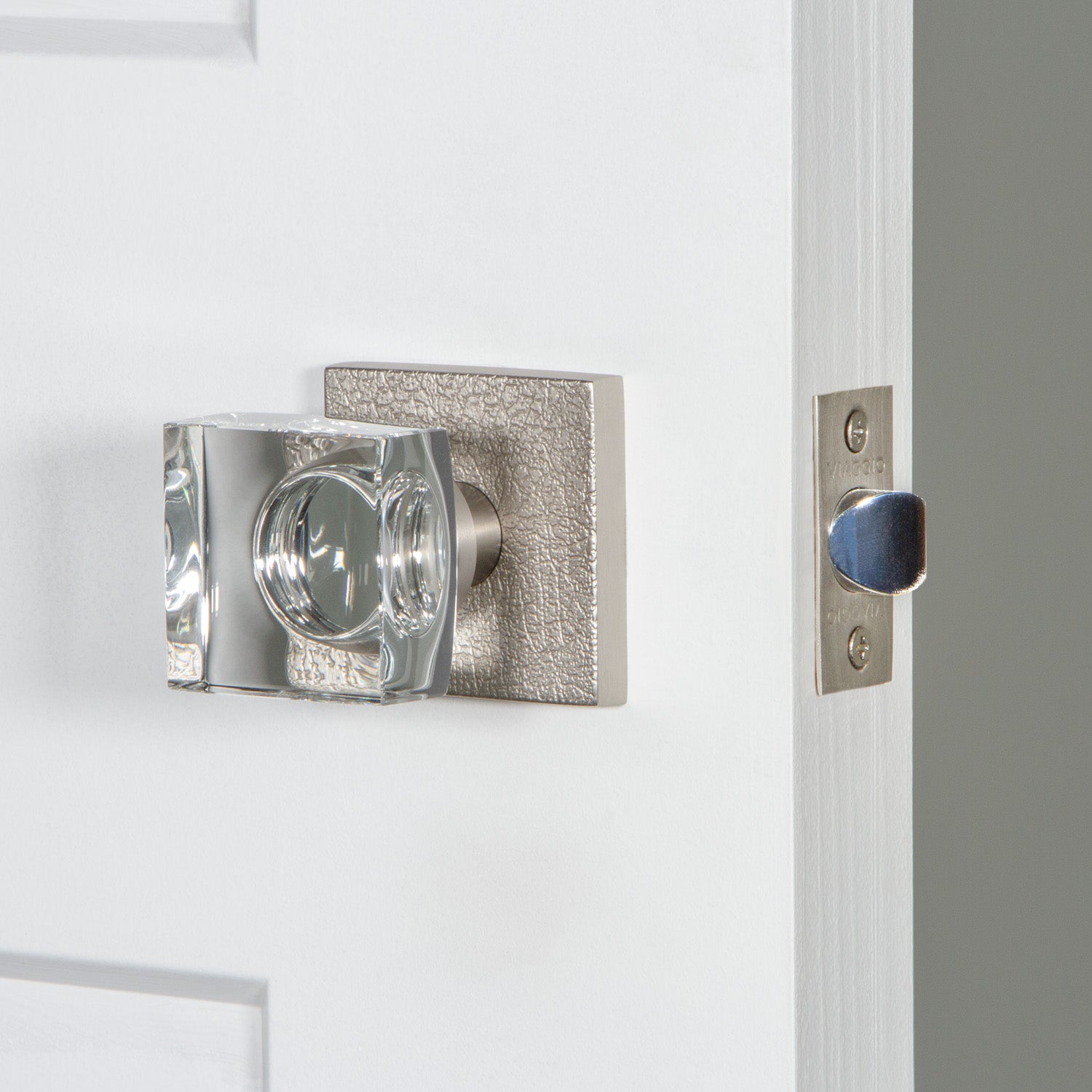 Quadrato Leather Rosette with Quadrato Crystal Knob in Satin Nickel
