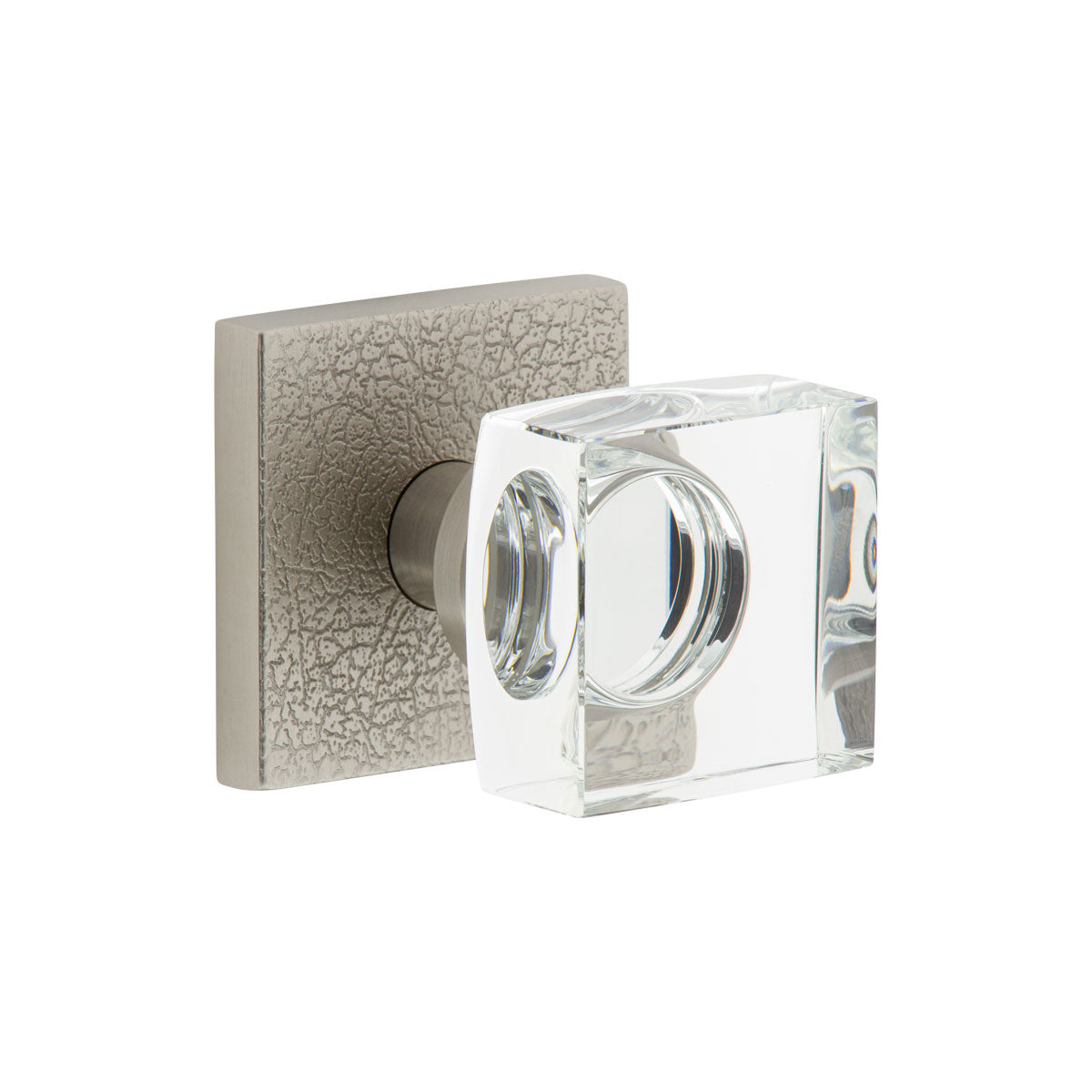 Quadrato Linen Rosette with Quadrato Knob in Satin Nickel