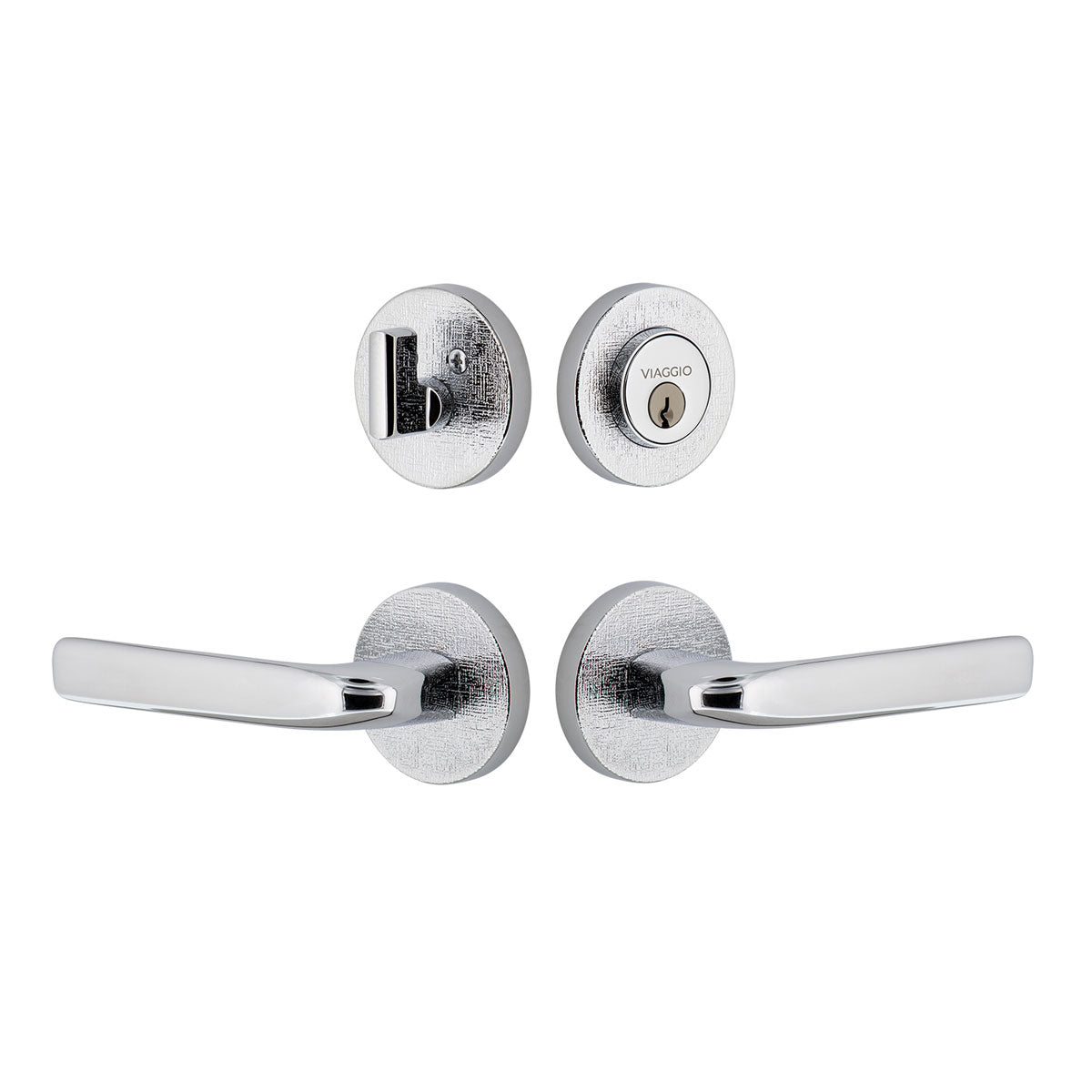 Circolo Linen Rosette Entry Set with Bella Lever in Bright Chrome