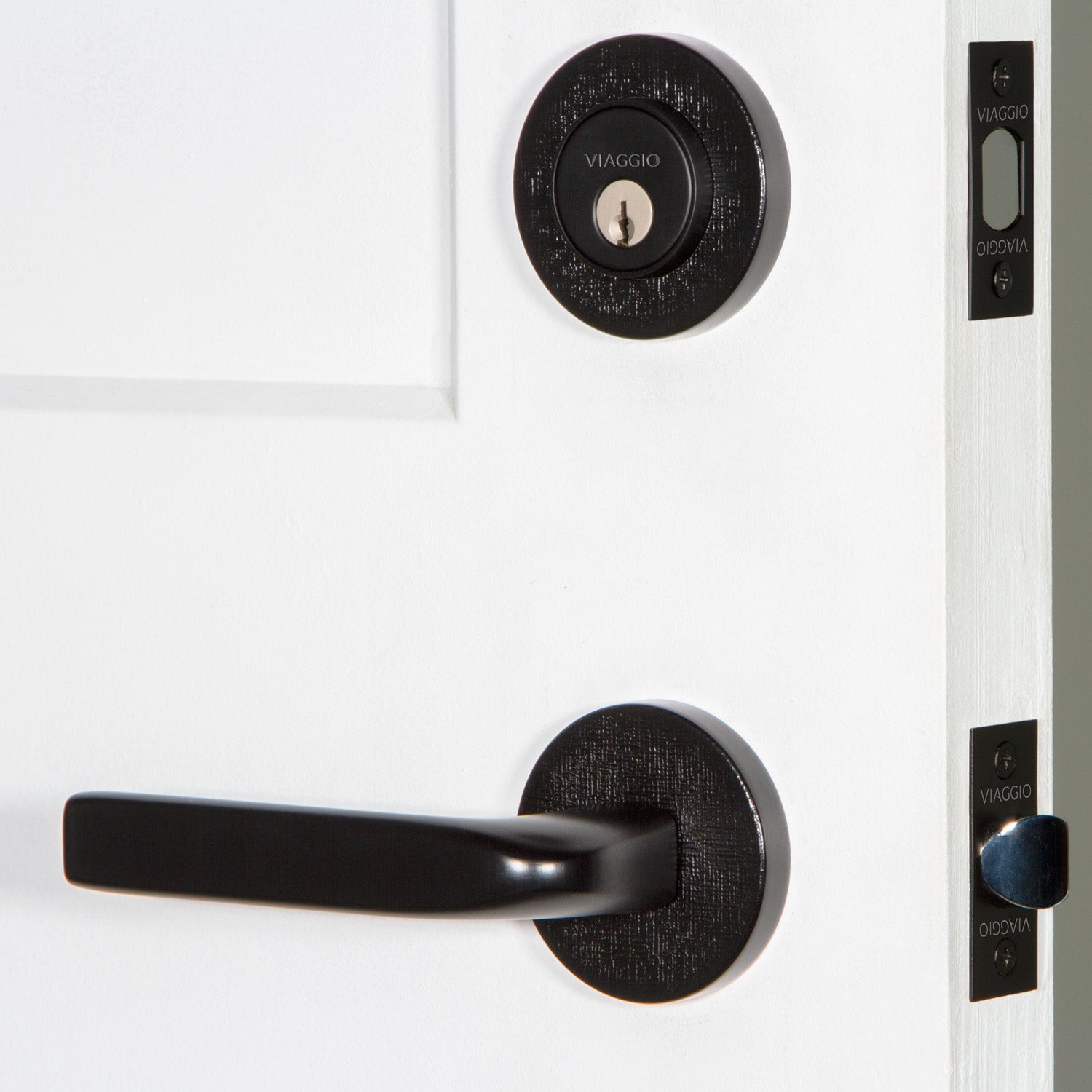 Circolo Linen Rosette Entry Set with Bella Lever in Satin Black