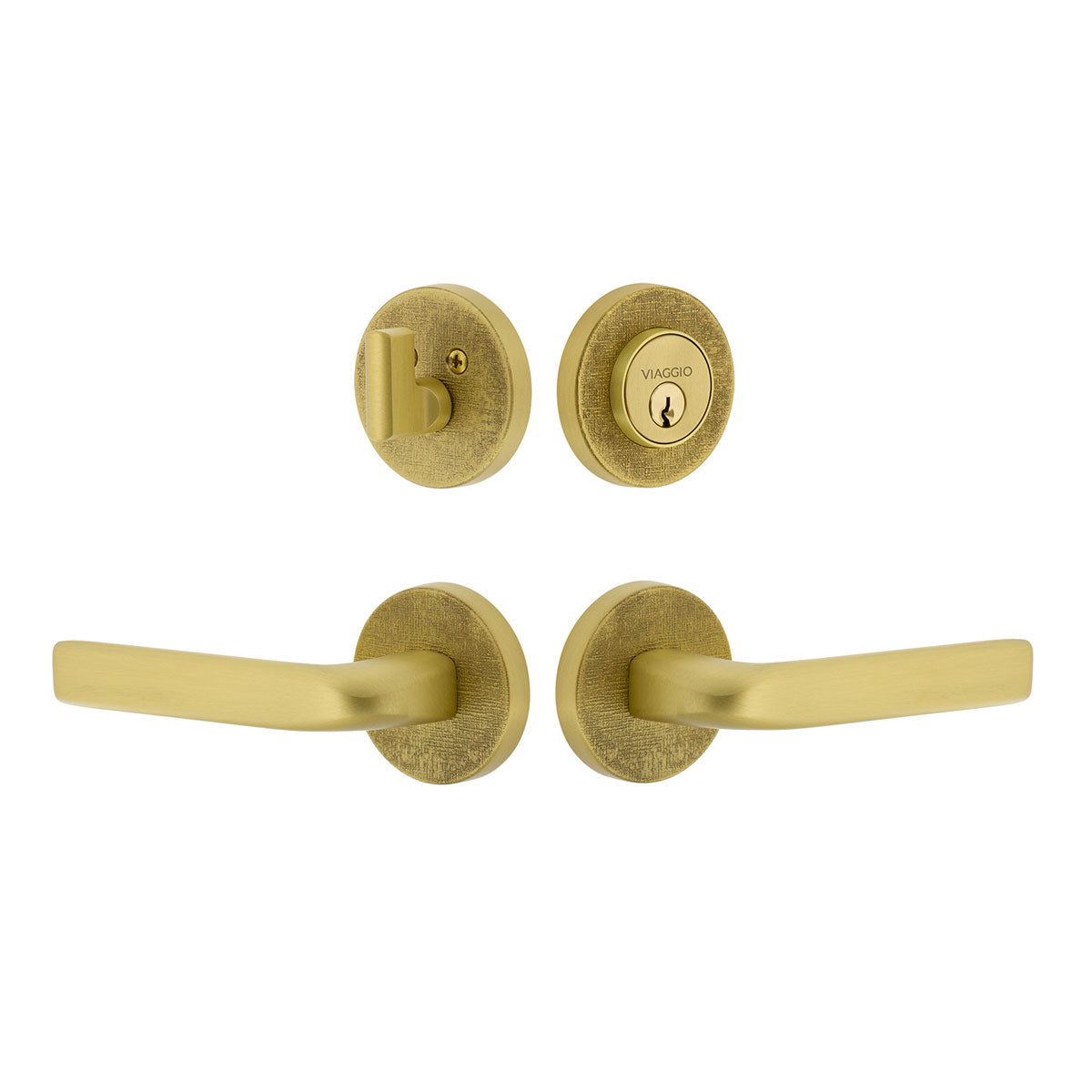 Circolo Linen Rosette Entry Set with Bella Lever in Satin Brass