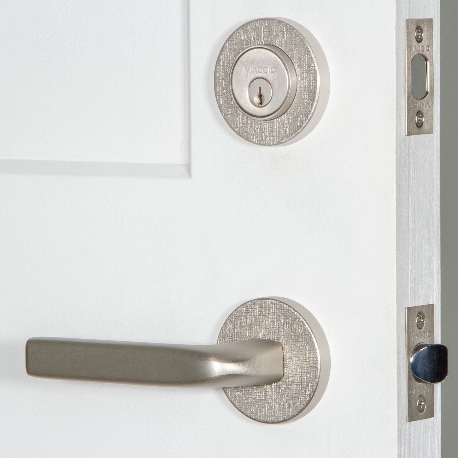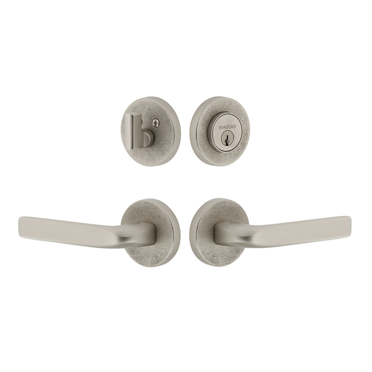 Circolo Linen Rosette Entry Set with Bella Lever in Satin Nickel