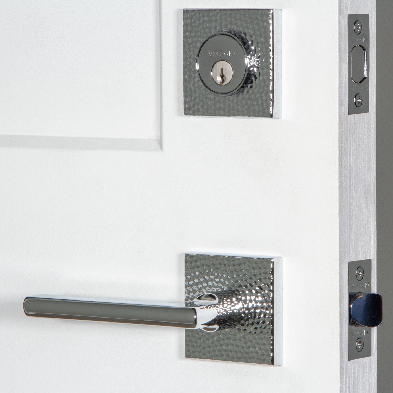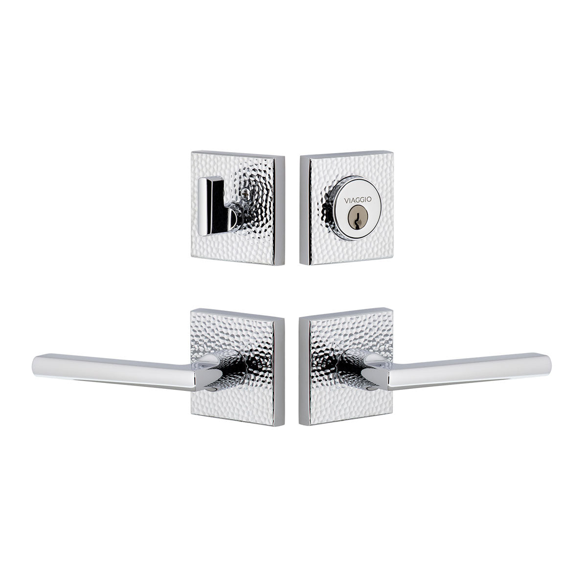 Quadrato Hammered Rosette Entry Set with Milano Lever in Bright Chrome