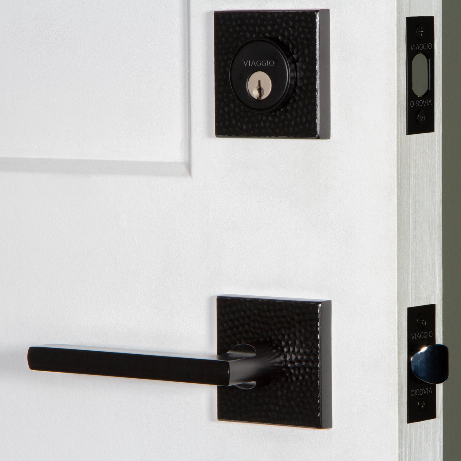 Quadrato Hammered Rosette Entry Set with Milano Lever in Satin Black