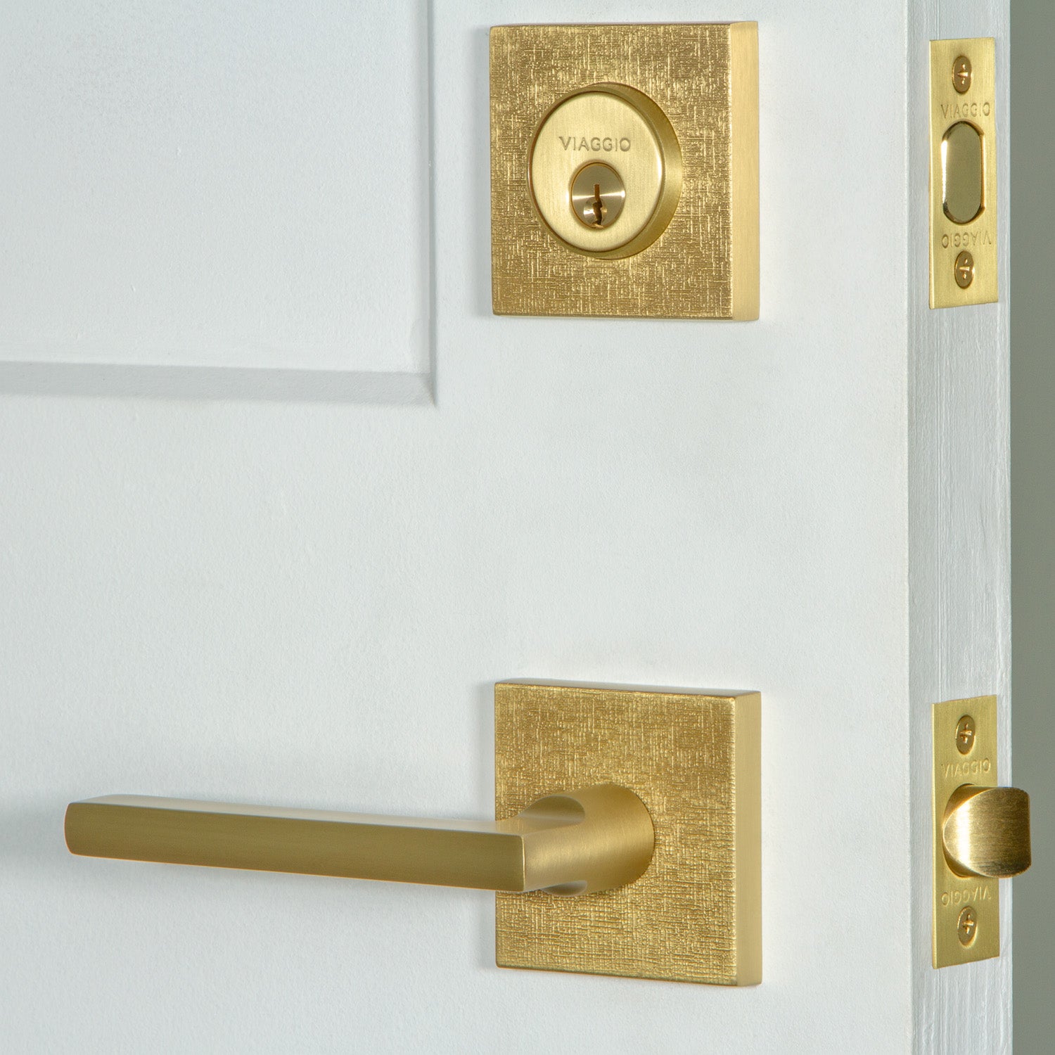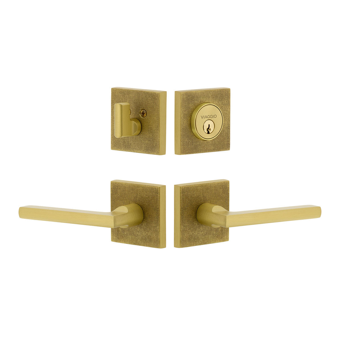 Quadrato Linen Rosette Entry Set with Milano Lever in Satin Brass
