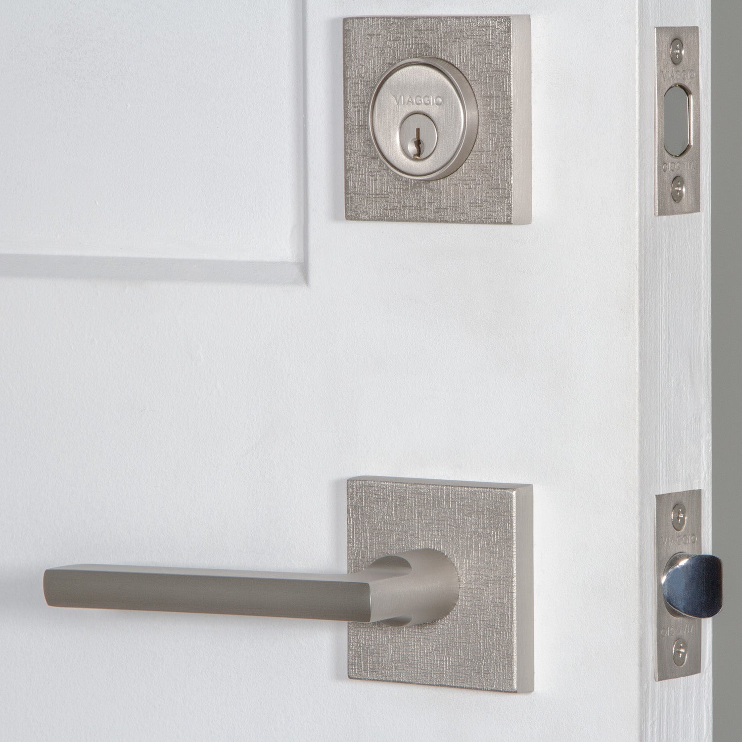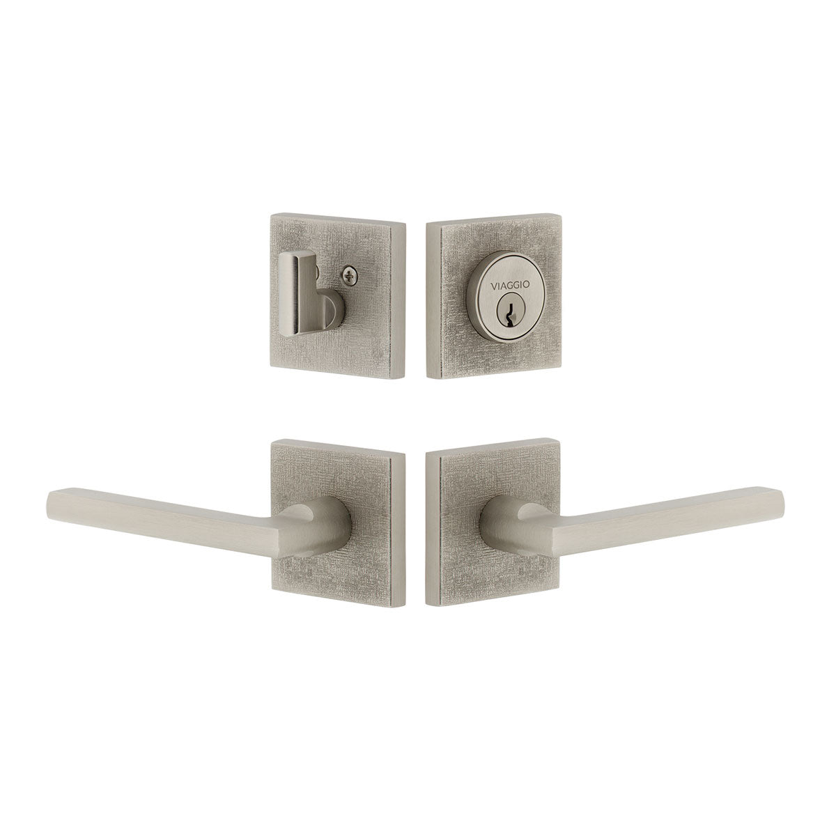 Quadrato Linen Rosette Entry Set with Milano Lever in Satin Nickel