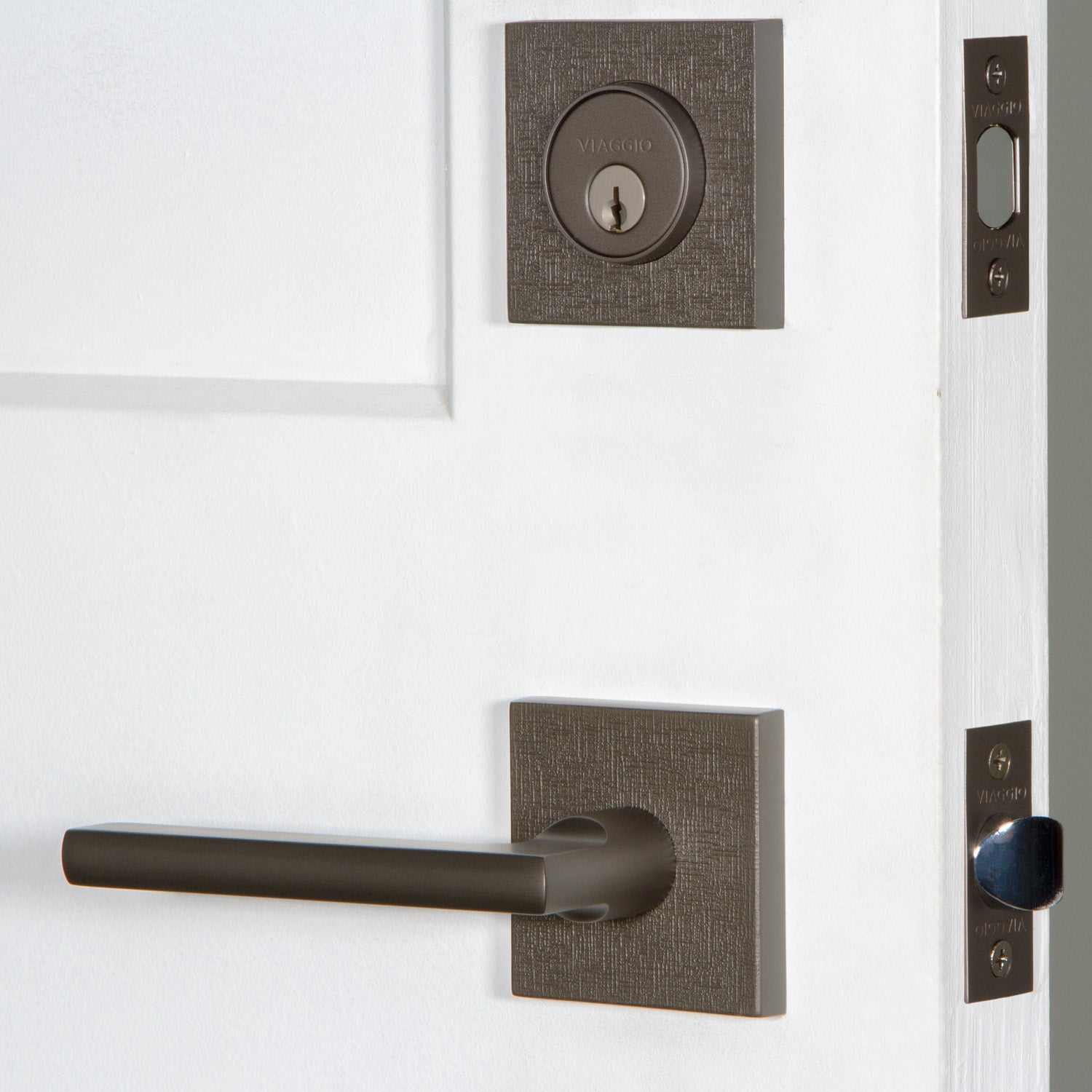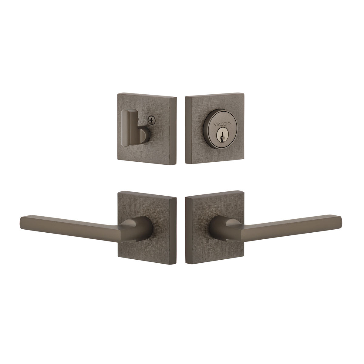 Quadrato Linen Rosette Entry Set with Milano Lever in Titanium Gray