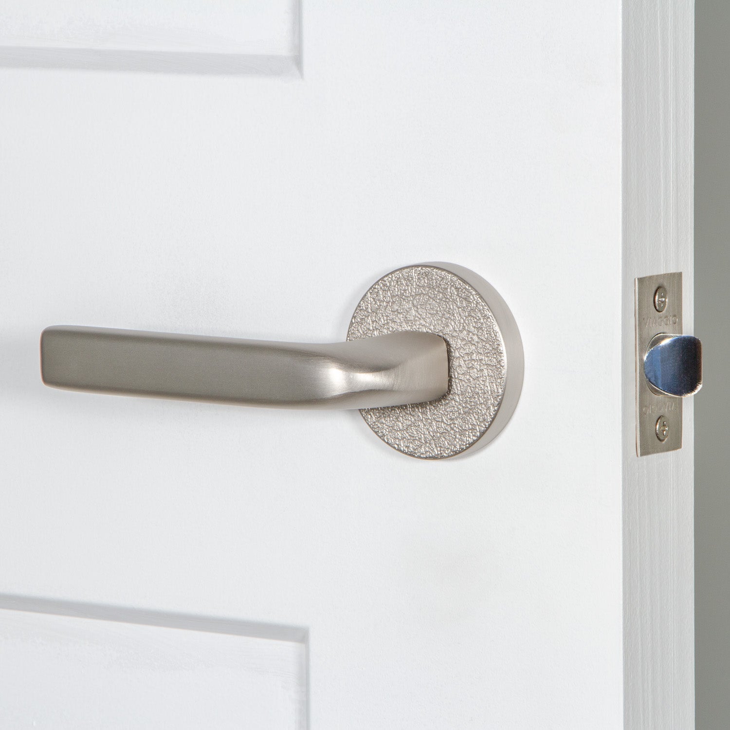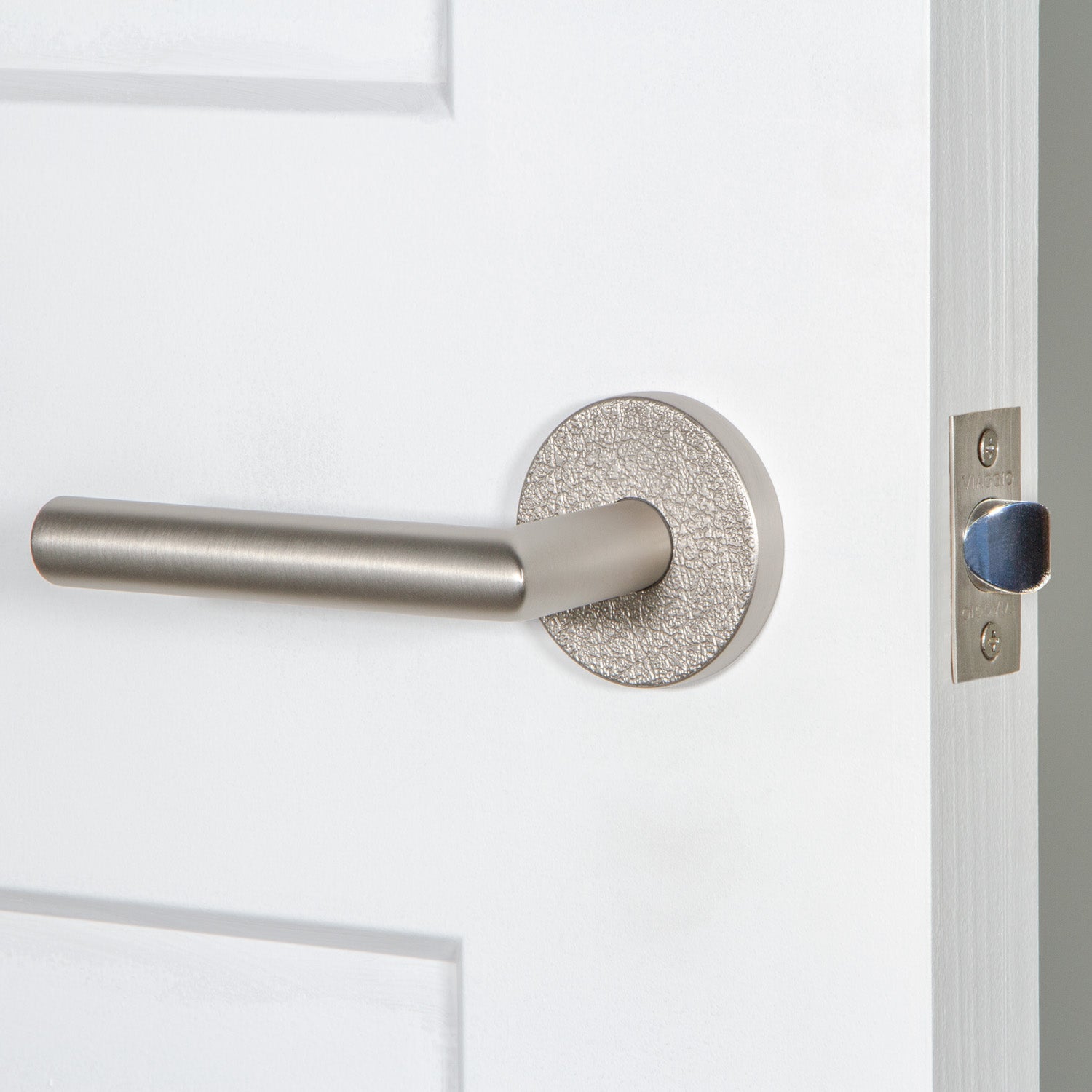 Our Motivo Collection includes rosettes and levers with natural and industrial textures including leather, linen, hammered, and rebar. When paired with a smooth knob or lever, textured rosettes create an imaginative juxtaposition to delight the eye.