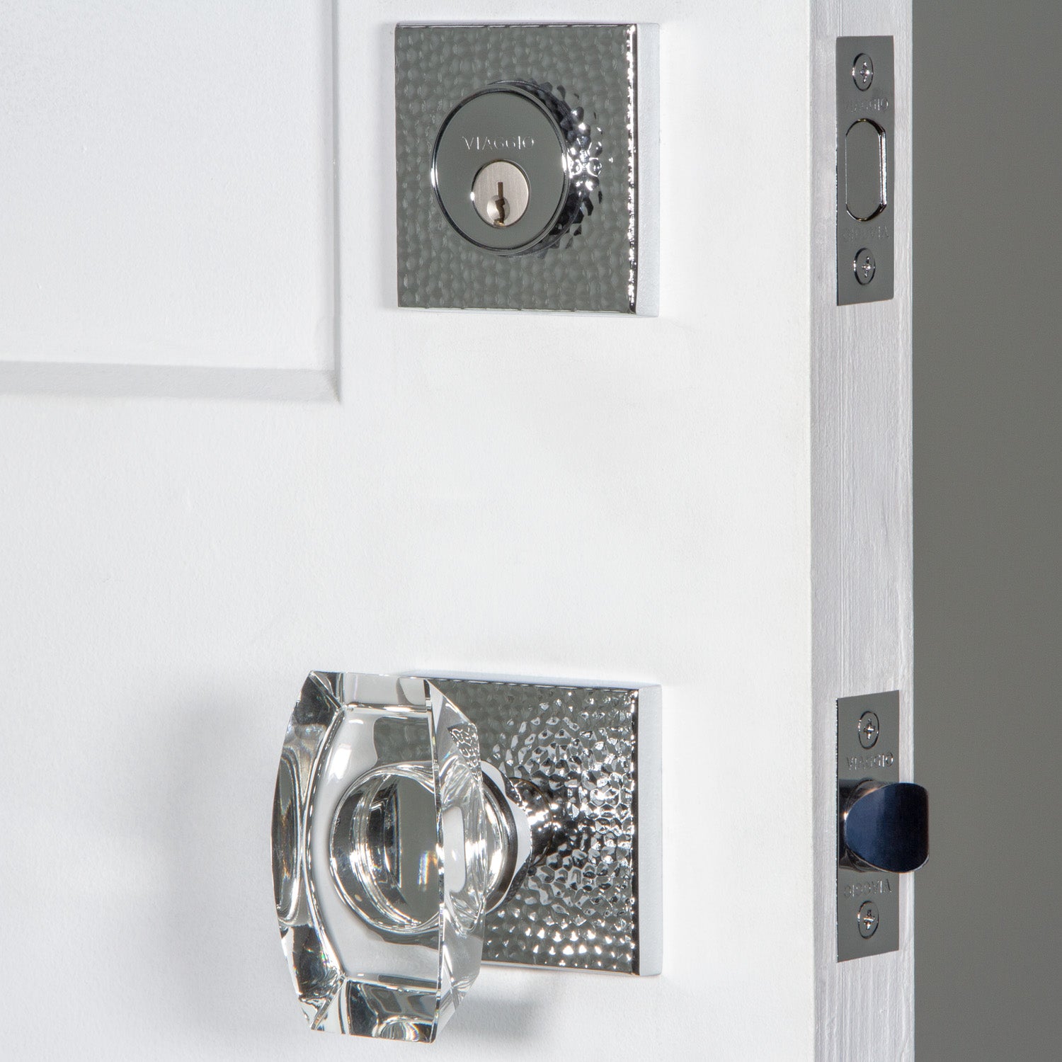 Quadrato Hammered Rosette Entry Set with Stella Knob in Bright Chrome