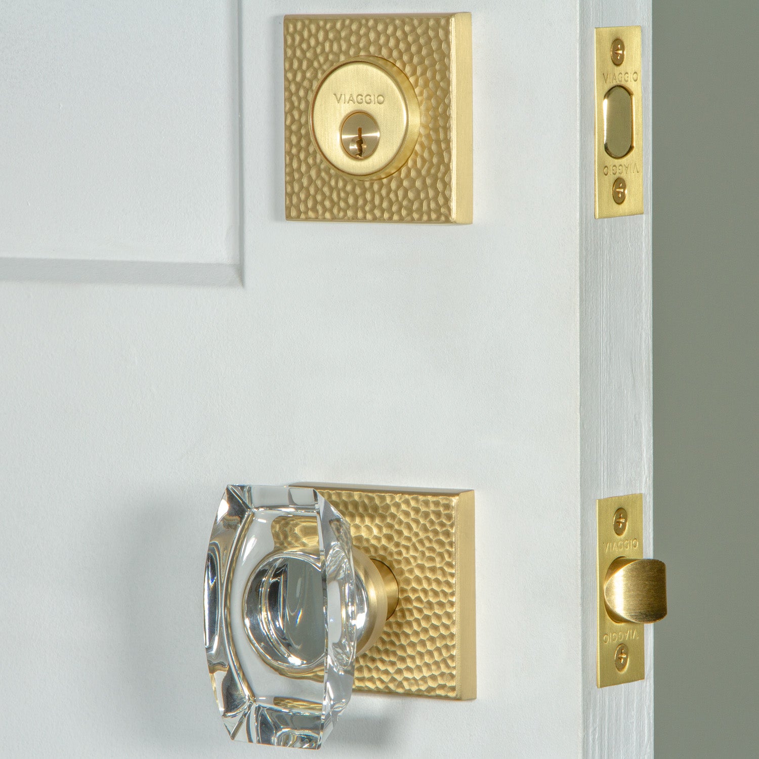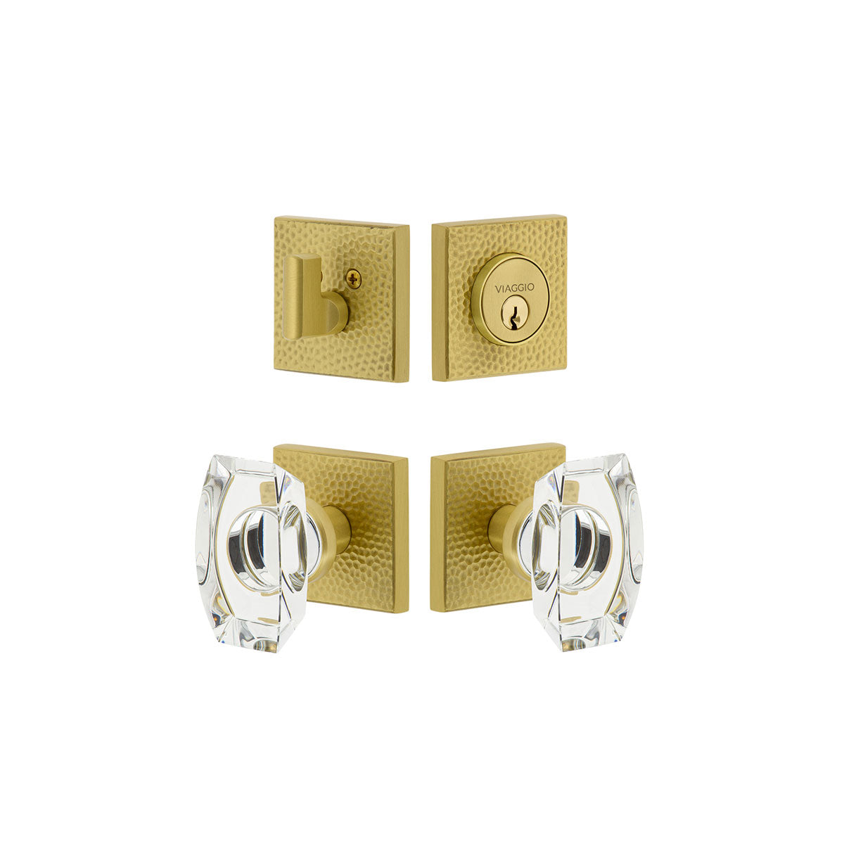 Quadrato Hammered Rosette Entry Set with Stella Knob in Satin Brass