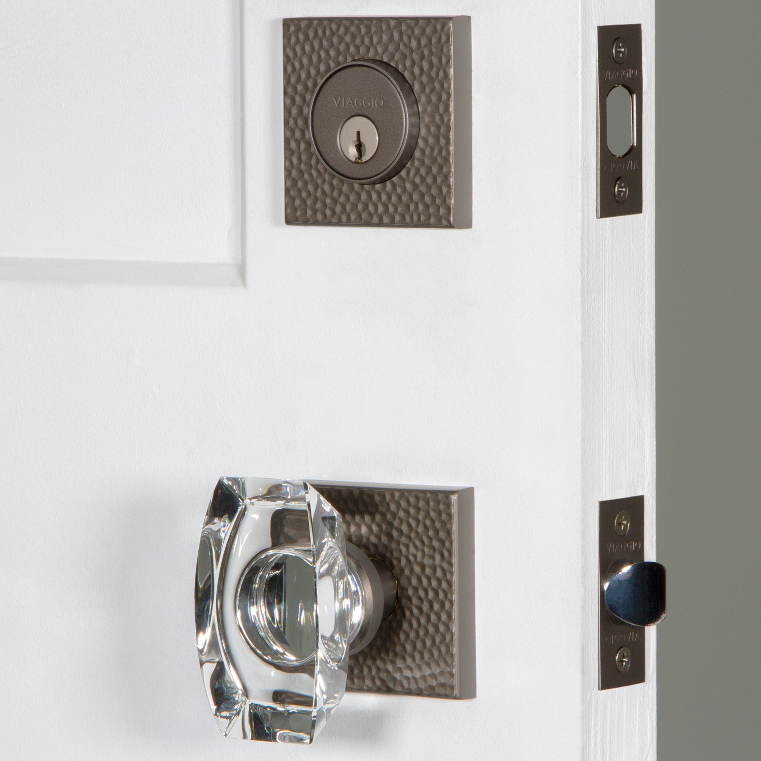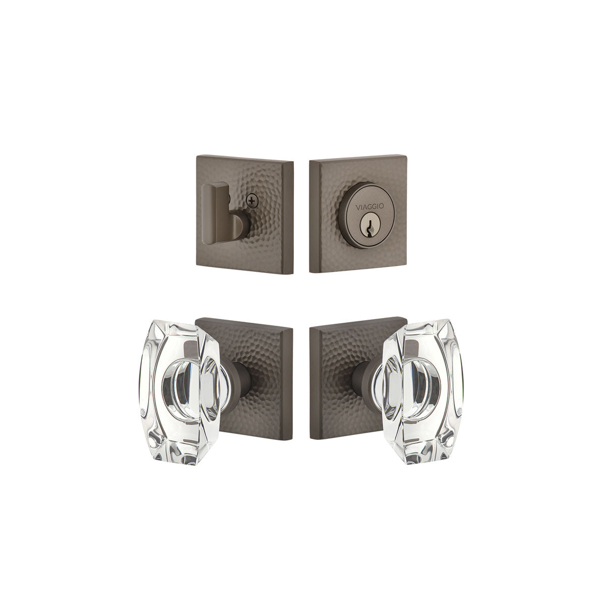 Quadrato Hammered Rosette Entry Set with Stella Knob in Titanium Gray