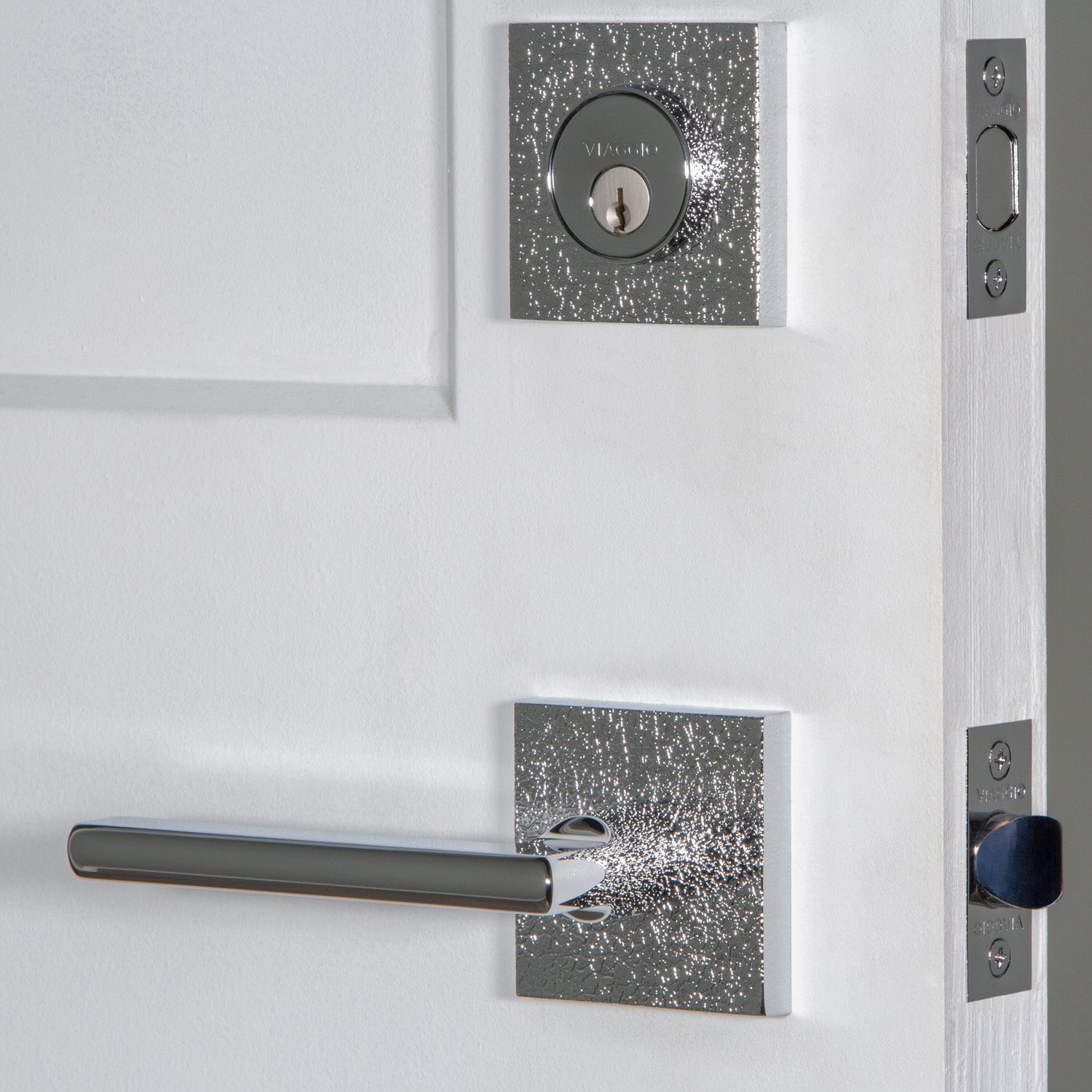 Quadrato Leather Rosette Entry Set with Milano Lever in Bright Chrome