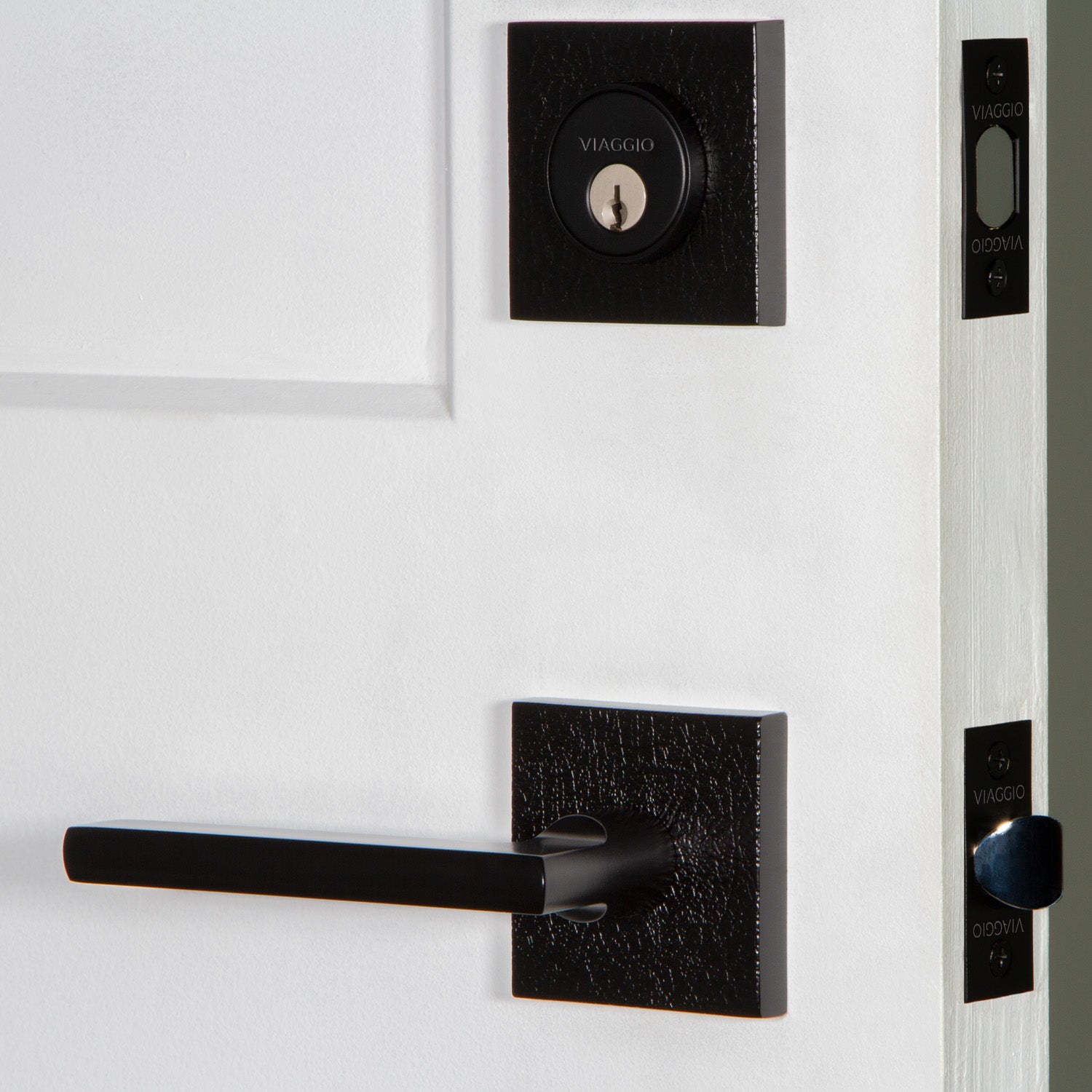 Quadrato Leather Rosette Entry Set with Milano Lever in Satin Black