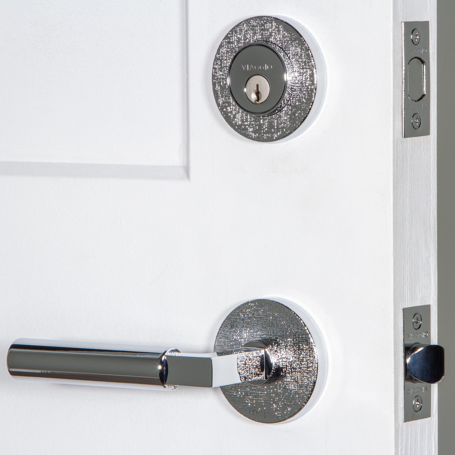 Circolo Hammered Rosette Entry Set with Contempo Rebar Lever in Bright Chrome
