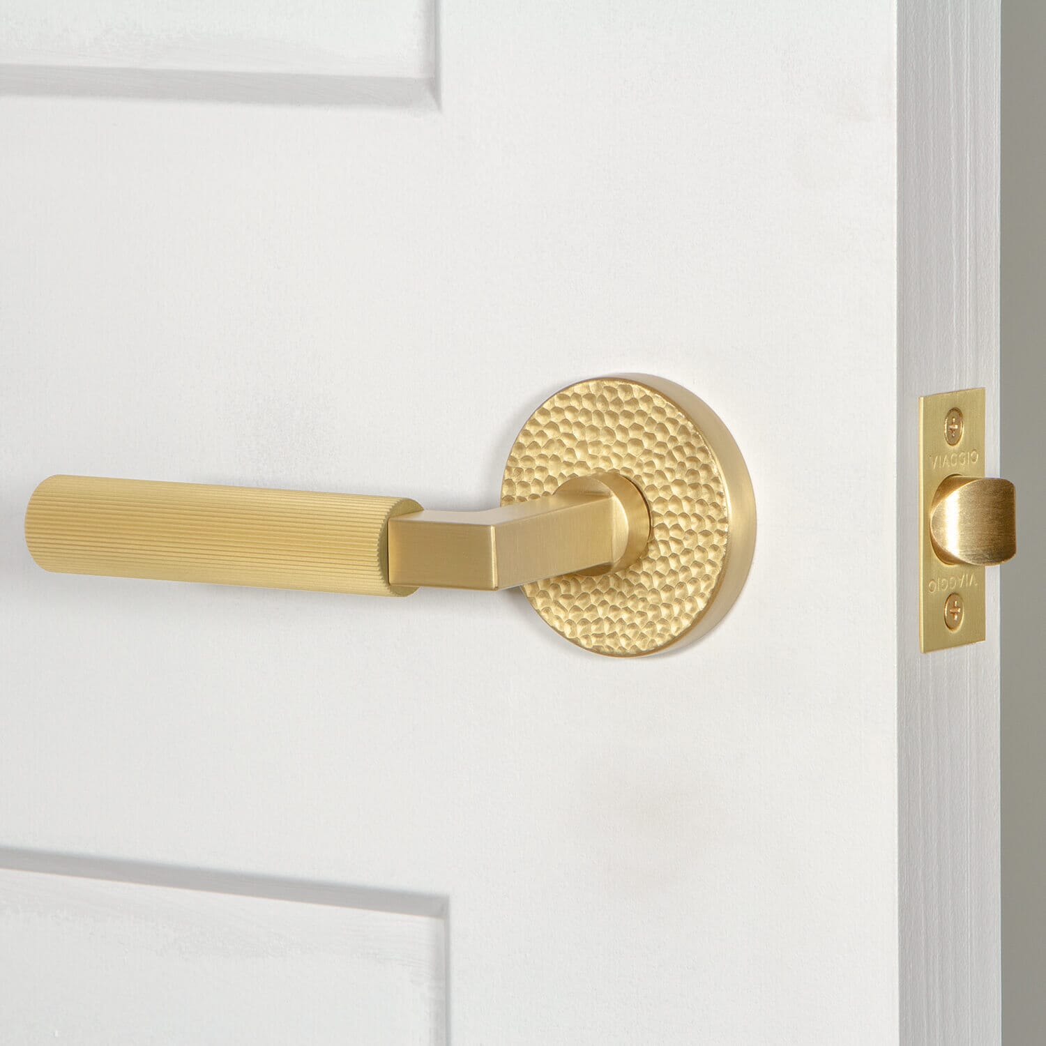 Circolo Hammered Rosette with Contempo Fluted Lever in Satin Brass