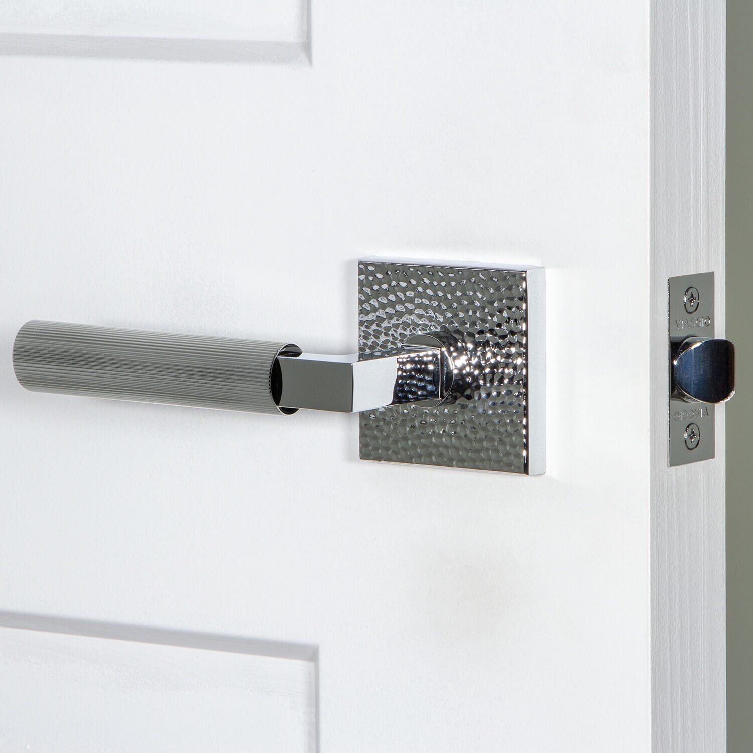 Quadrato Hammered Rosette with Contempo Fluted Lever in Bright Chrome