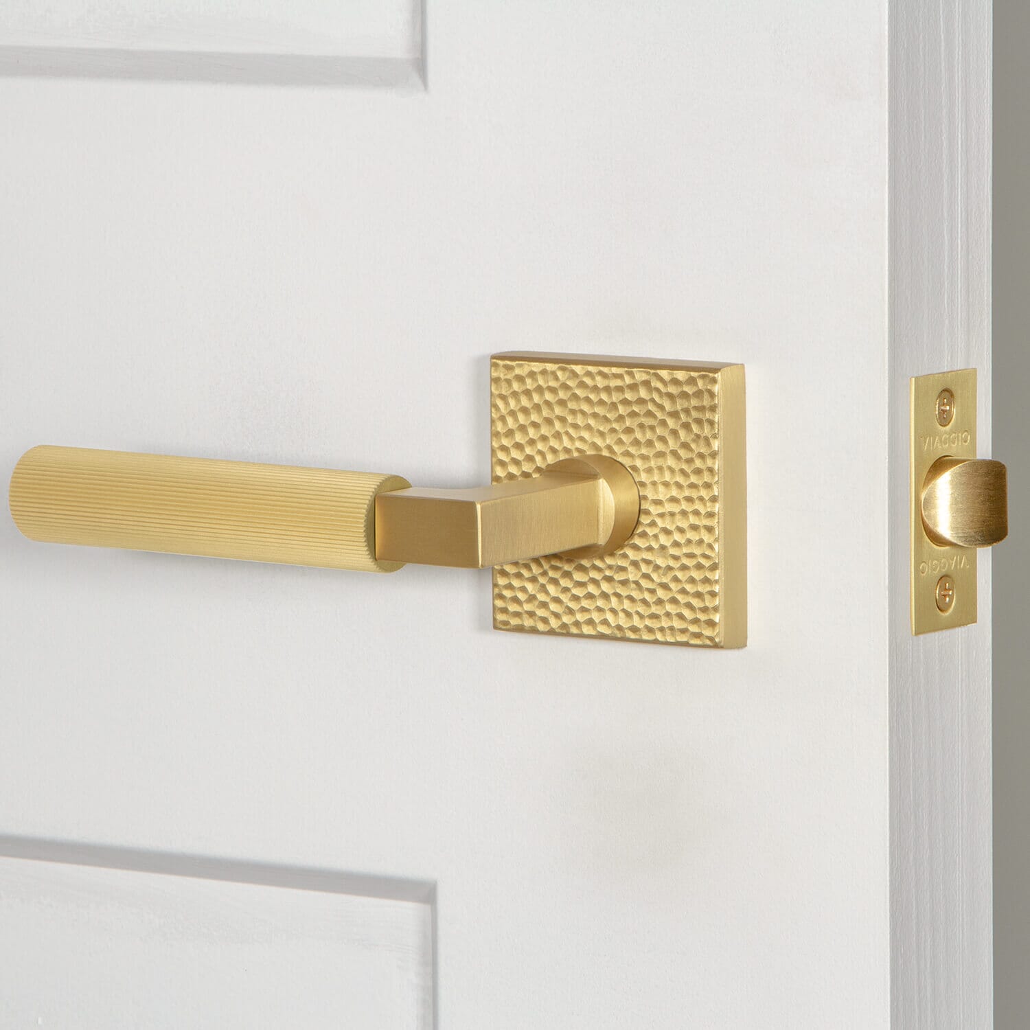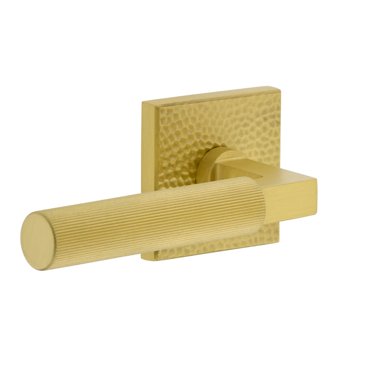 Quadrato Hammered Rosette with Contempo Fluted Lever in Satin Brass