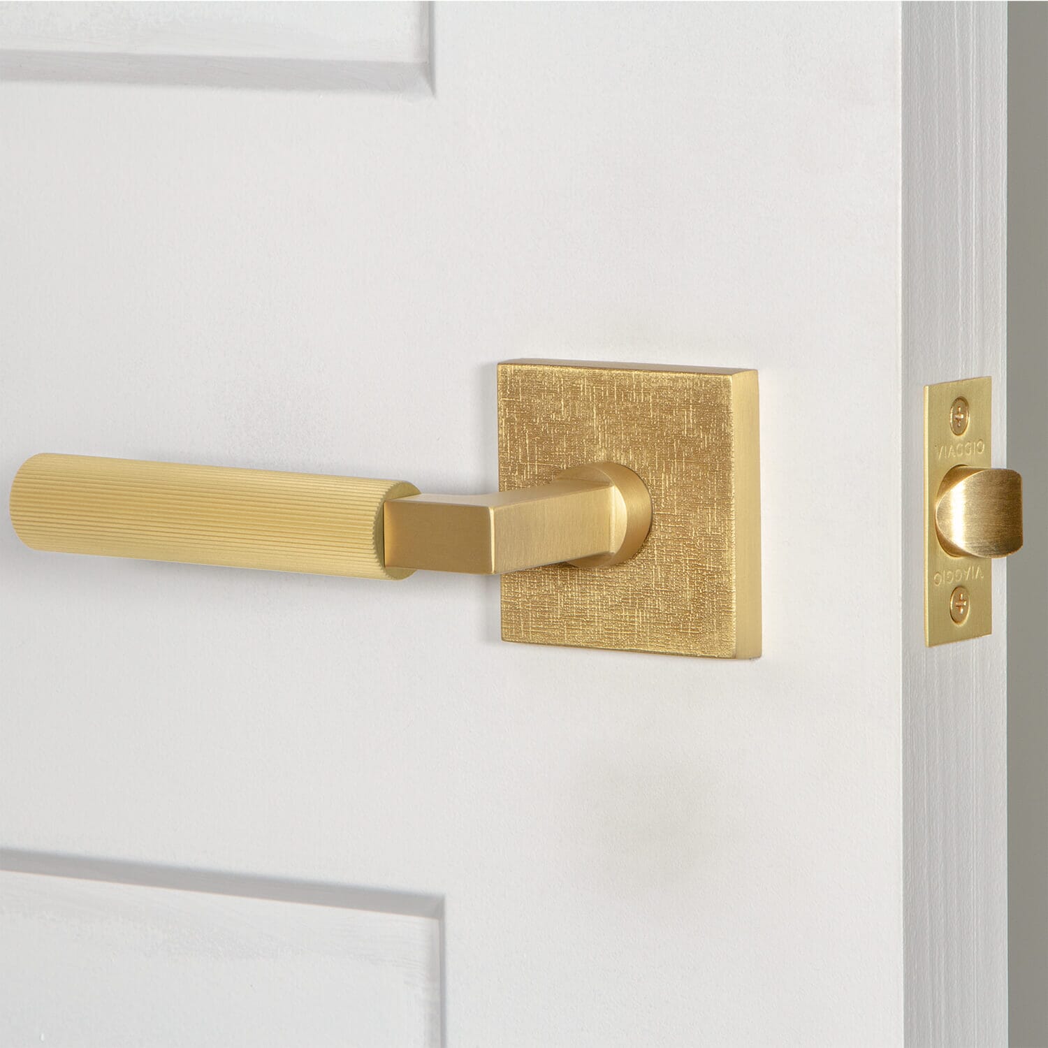 Quadrato Rosette with Contempo Fluted Lever in Satin Brass