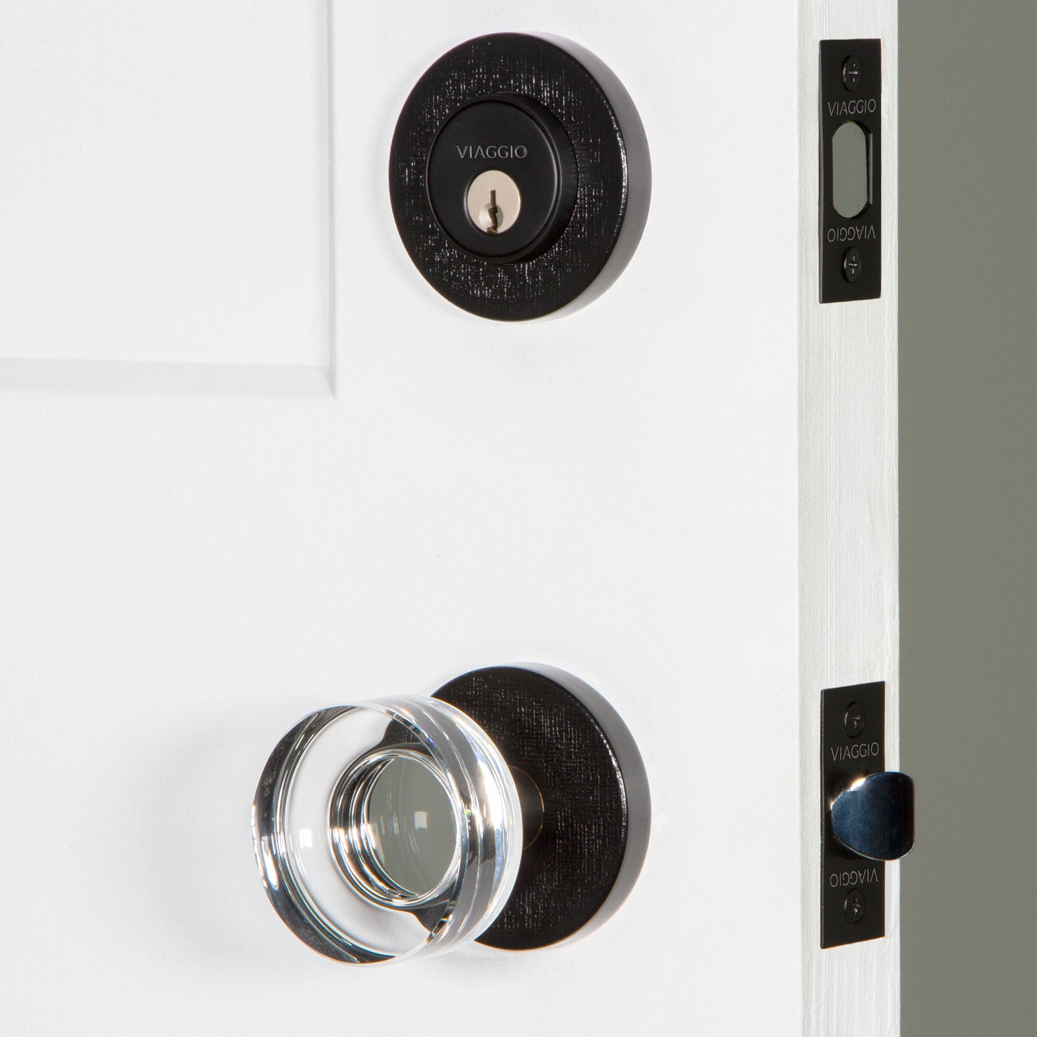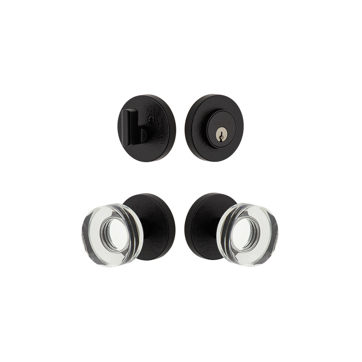 Circolo Linen Rosette Entry Set with Circolo Crystal Knob in Satin Black
