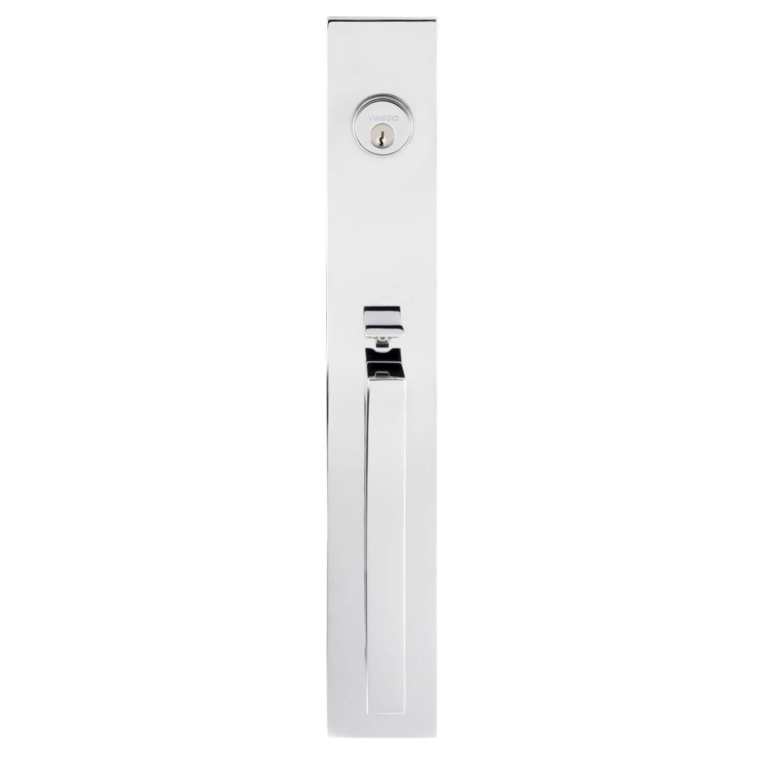 Quadrato Rosette Entry Set with Circolo Crystal Knob in Bright Chrome